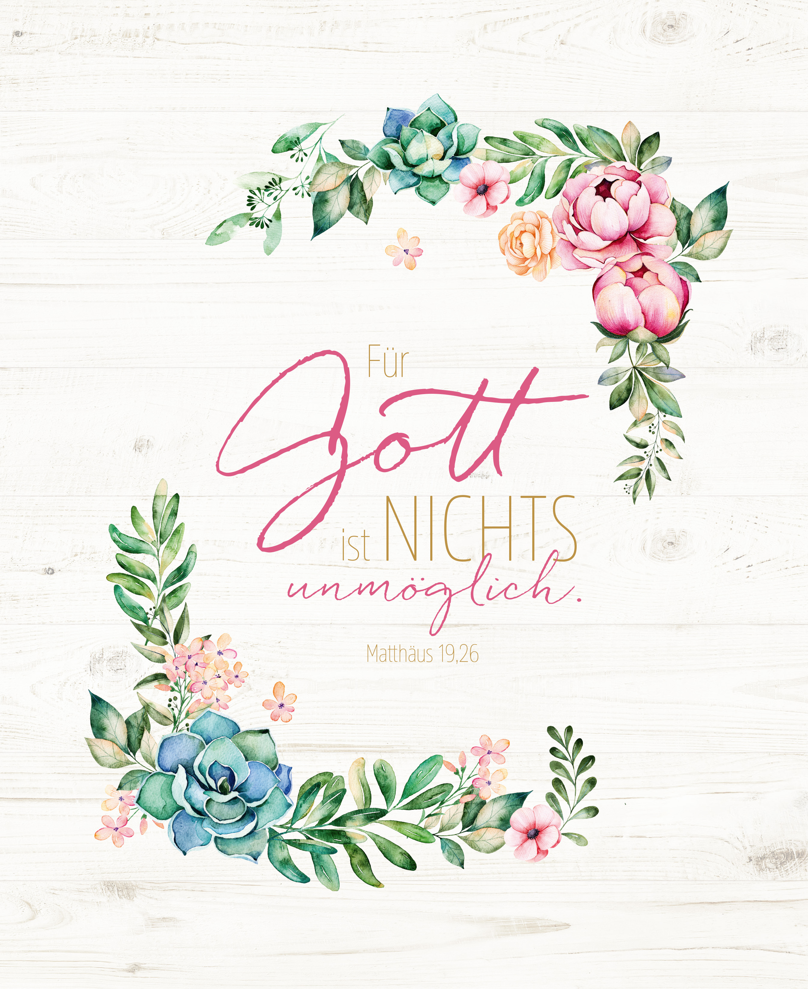 Das Dekobild mit zauberhaft illustrierten Blüten und Blättern bringt nicht nur frisches Grün in die Wohnung, es erinnert auch immer wieder daran, dass für Gott nichts unmöglich ist.