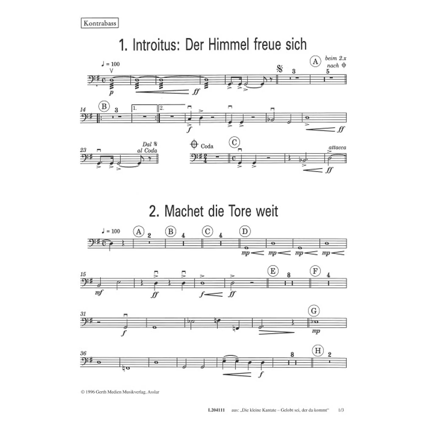 Gelobt sei, der da kommt (Kontrabass) (diese Variante haben Sie gerade ausgewählt) (Kantate, Orchestereinzelstimme) Klaus Heizmann (Komposition), Johannes Jourdan (Text) |