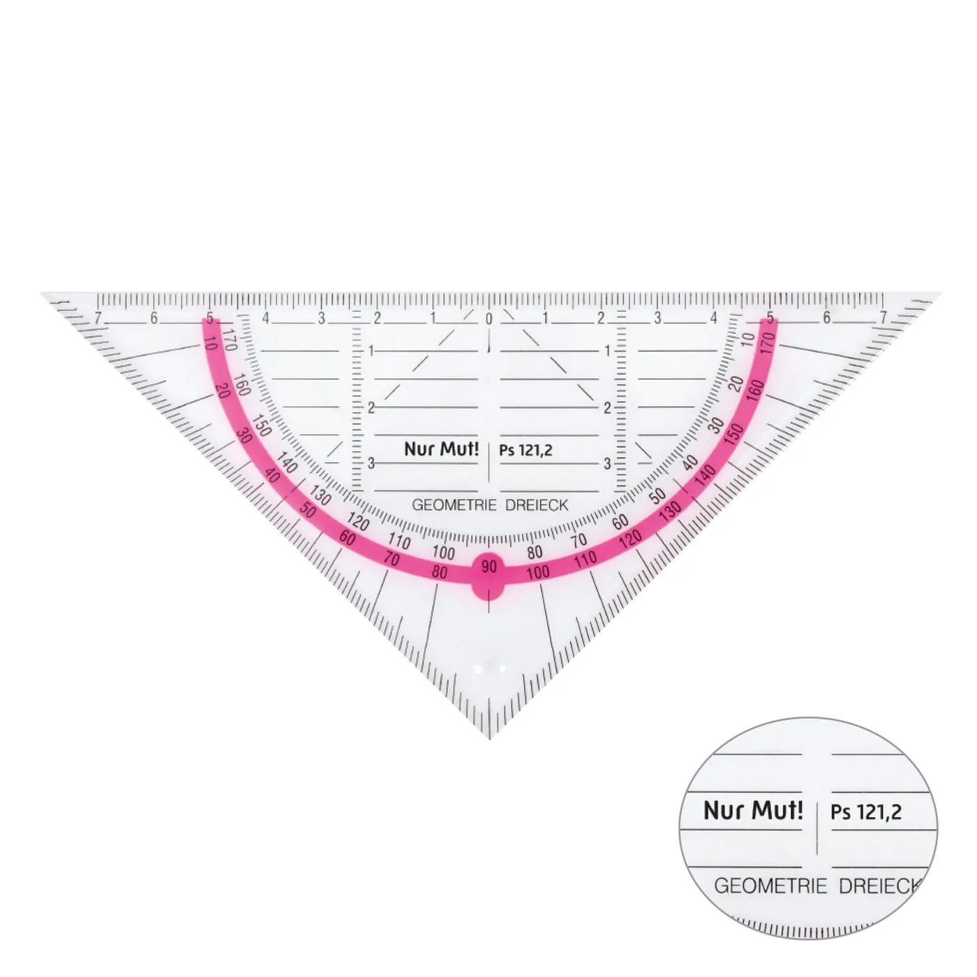 Darf in keinem Mäppchen fehlen: Geodreieck bedruckt mit dem Vers „Nur Mut! Ps 121,2“ , erhältlich in schönen knalligen Neonfarben