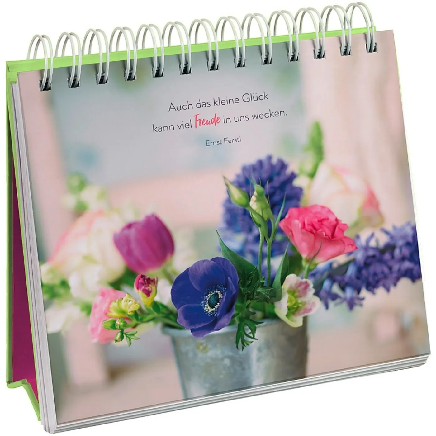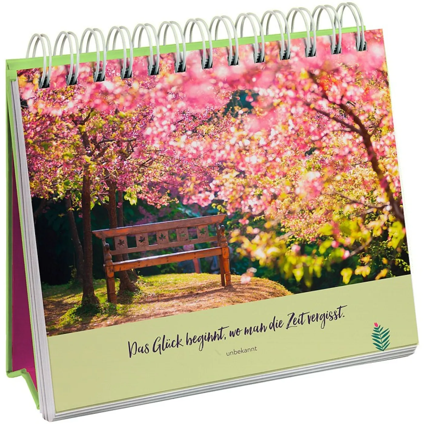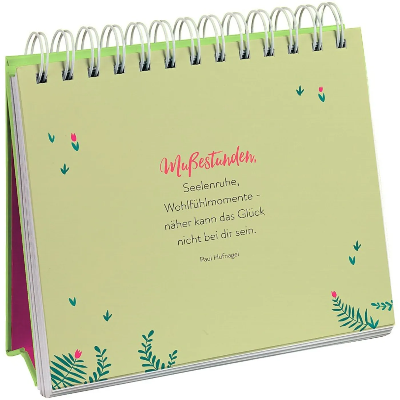 Inspirierende Aphorismen und Zitate rund um die Themen Glück, Glücklich sein und Lebensfreude zieren diesen farbenfrohen Spiralaufsteller. Stimmungsvolle Natur-Fotos sowie florale Illustrationen runden die Gestaltung ab und unterstreichen den fröhlichen Charakter der Tischdeko. Ein Blickfang in jedem Raum und ein perfektes Geschenk zum Geburtstag, Muttertag oder einfach so – auch an sich selbst.