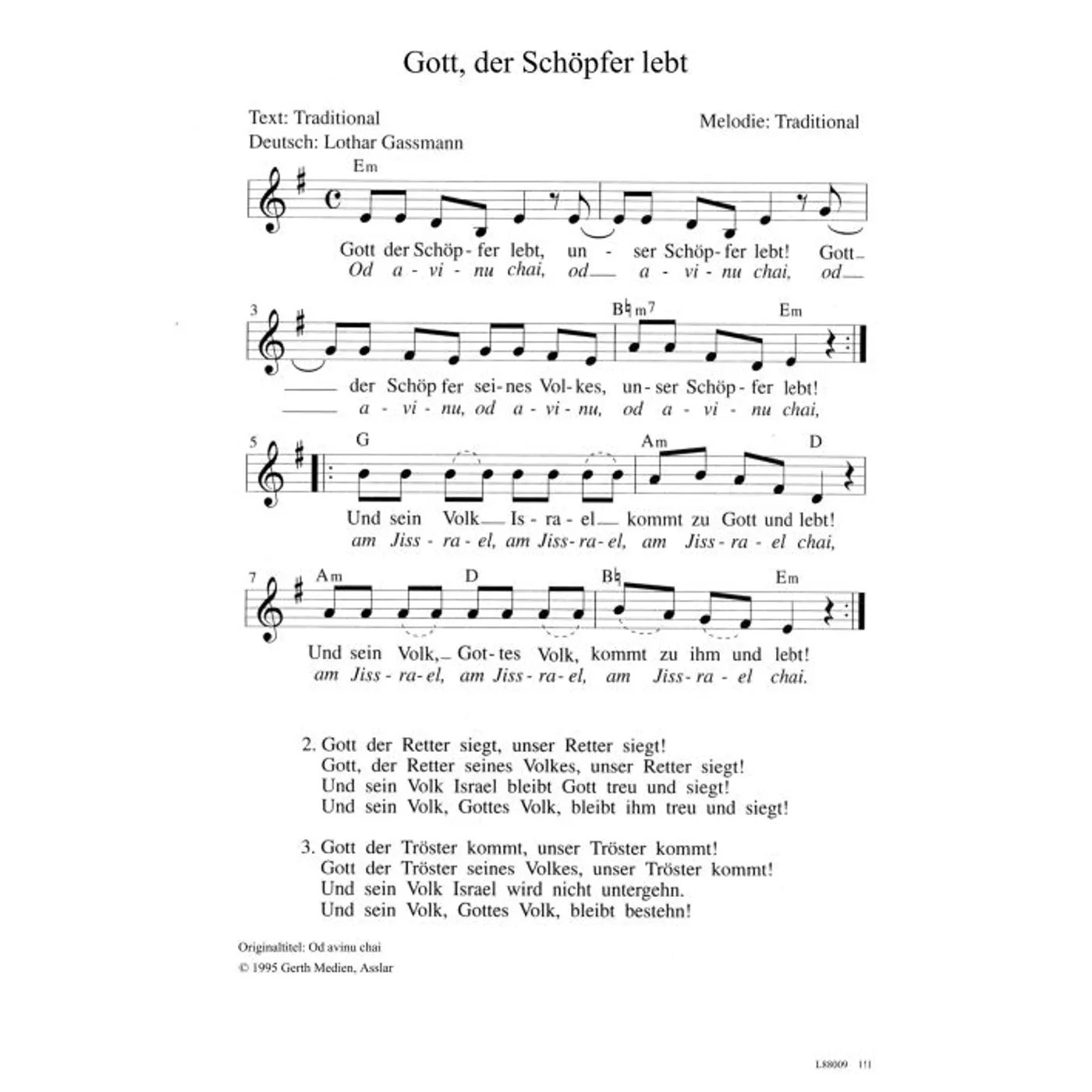 Gott, der Schöpfer lebt (diese Variante haben Sie gerade ausgewählt) (einstimmig, mit Akkorden, E-Moll) Lothar Gassmann (Übersetzung) |