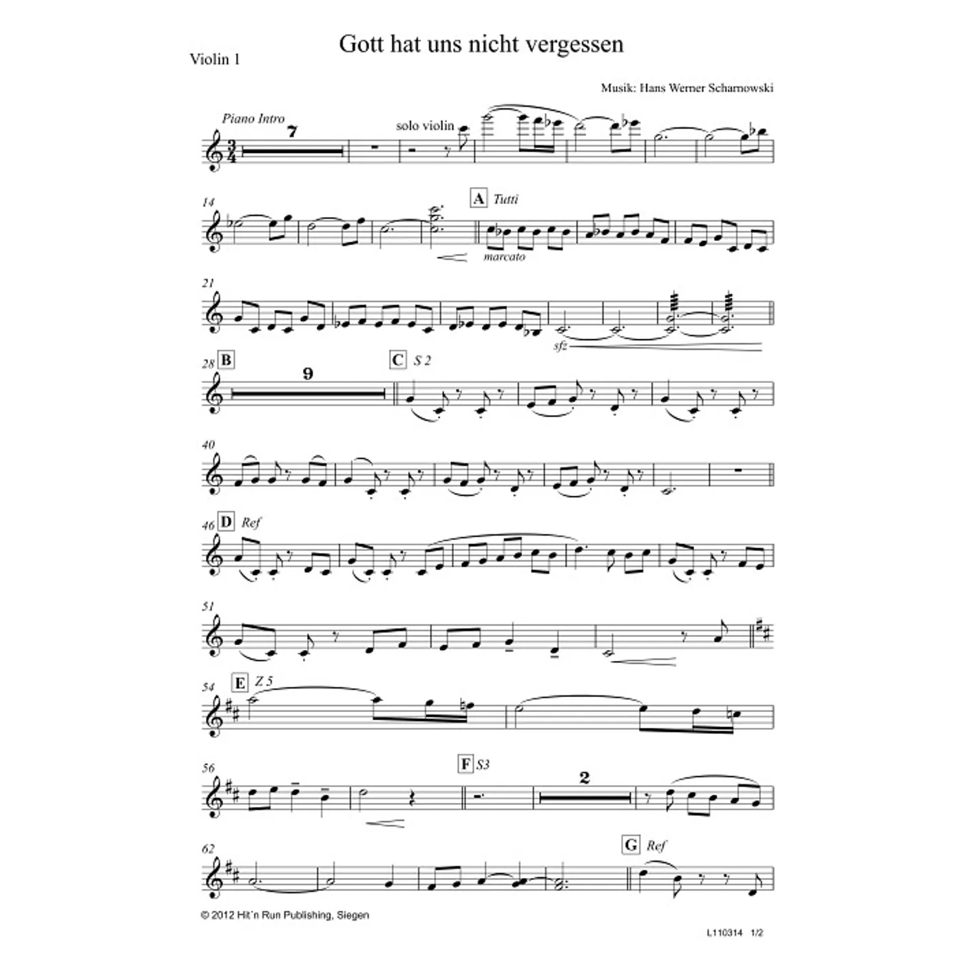 Gott hat uns nicht vergessen (Violine 1) (diese Variante haben Sie gerade ausgewählt) (modern, Orchestereinzelstimme) Hans Werner Scharnowski (Komposition, Bearbeiter) |