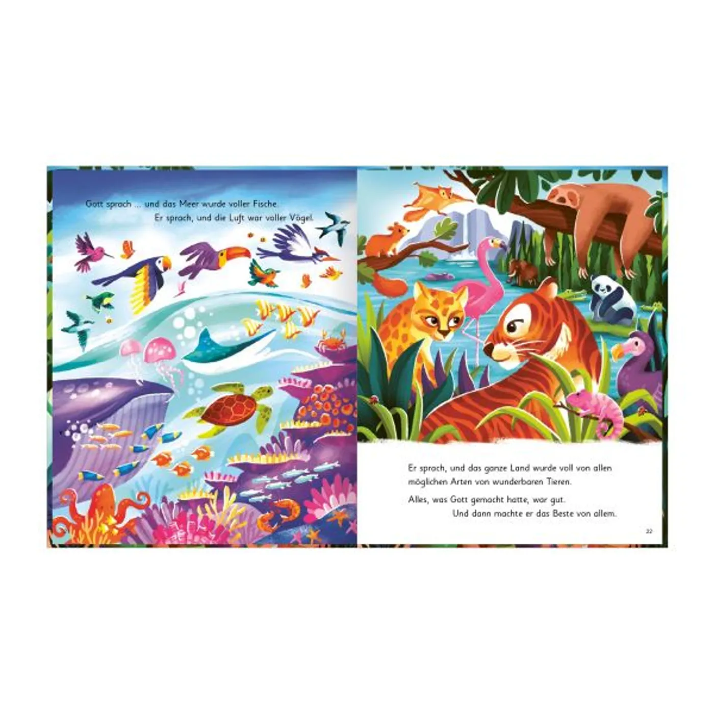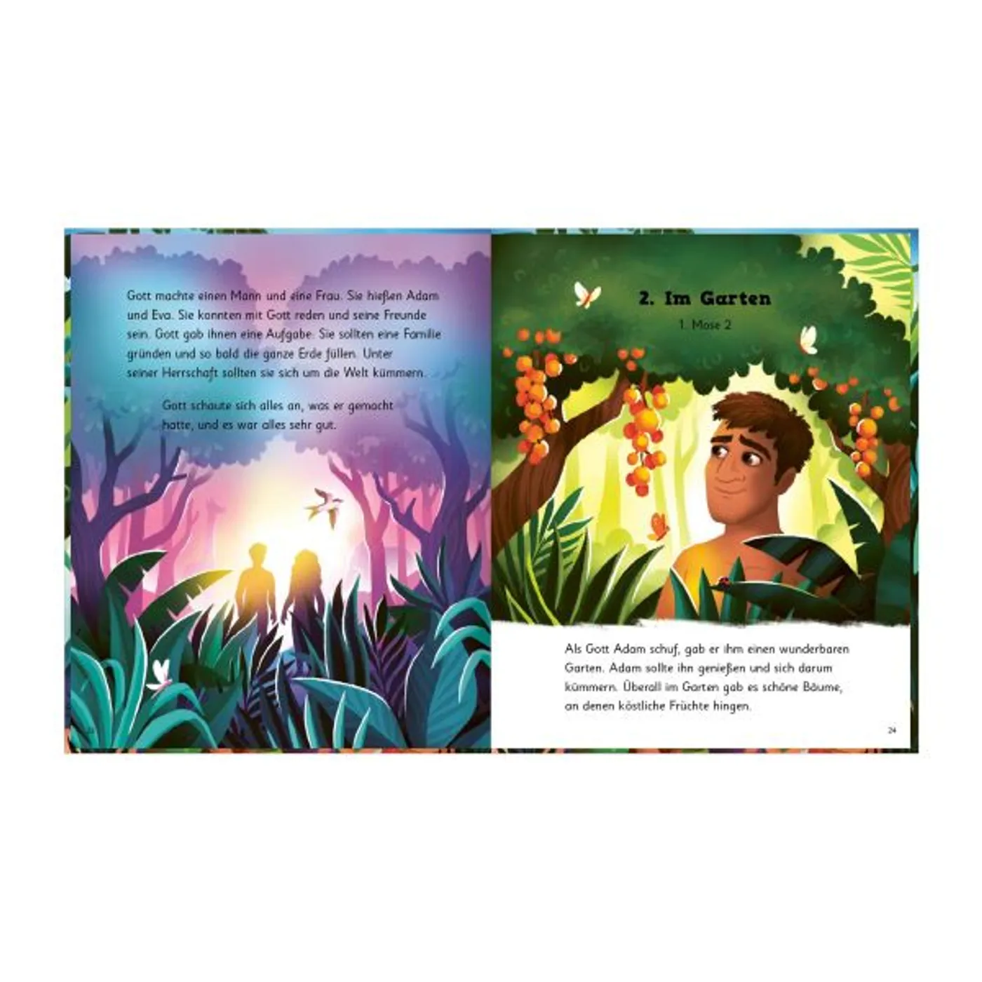 Ich bin wirklich begeistert von dieser Kinderbibel. Sie ist wunderschön illustriert. Außerdem finde ich die Überleitungen zwischen den einzelnen Geschichten gelungen, was den Kindern hilft die Geschichten in Zusammenhang zu bringen. Super cool ist auch, dass Loblieder in Reimform gebracht wurden (Z.B. Ja, ich glaub an sein Versprechen, denn er wird es niemals brechen). Außerdem gut verständlich sind die "Versprechensleitfäden", bei denen die Kinder anhand von Icons, die neben der Geschichte abgebildet sind, erkennen können, welche Versprechen Gott gibt und welche Versprechen er erfüllt. Hammer gemacht. Unsere Lieblingskinderbibel. Klare Kaufempfehlung.