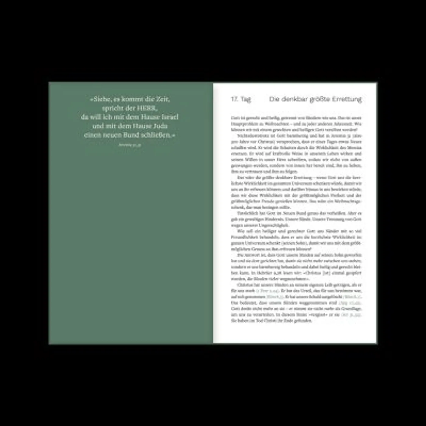 Die 25 Andachten von John Piper beginnen am 1. Dezember und führen bis zum ersten Weihnachtstag. Dieses Andachtsbuch will dir helfen, Jesus im Zentrum und als größten Schatz der Adventszeit zu bewahren. Die Kerzen und Süßigkeiten haben ihren Platz, aber du solltest sicherstellen, dass in all der Hektik und dem Trubel Jesus über alles verherrlicht wird.