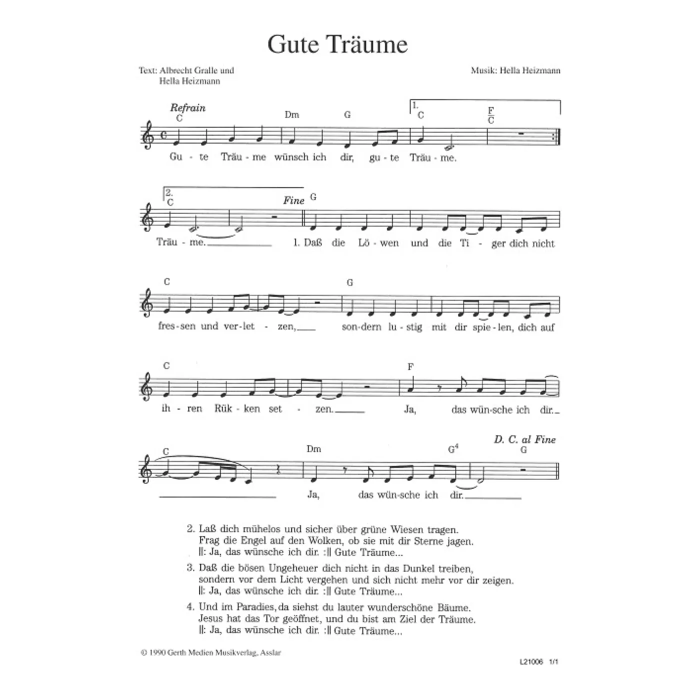 Gute Träume (diese Variante haben Sie gerade ausgewählt) (einstimmig, mit Akkorden, C-Dur) Hella Heizmann (Komposition, Text), Albrecht Gralle (Text) |