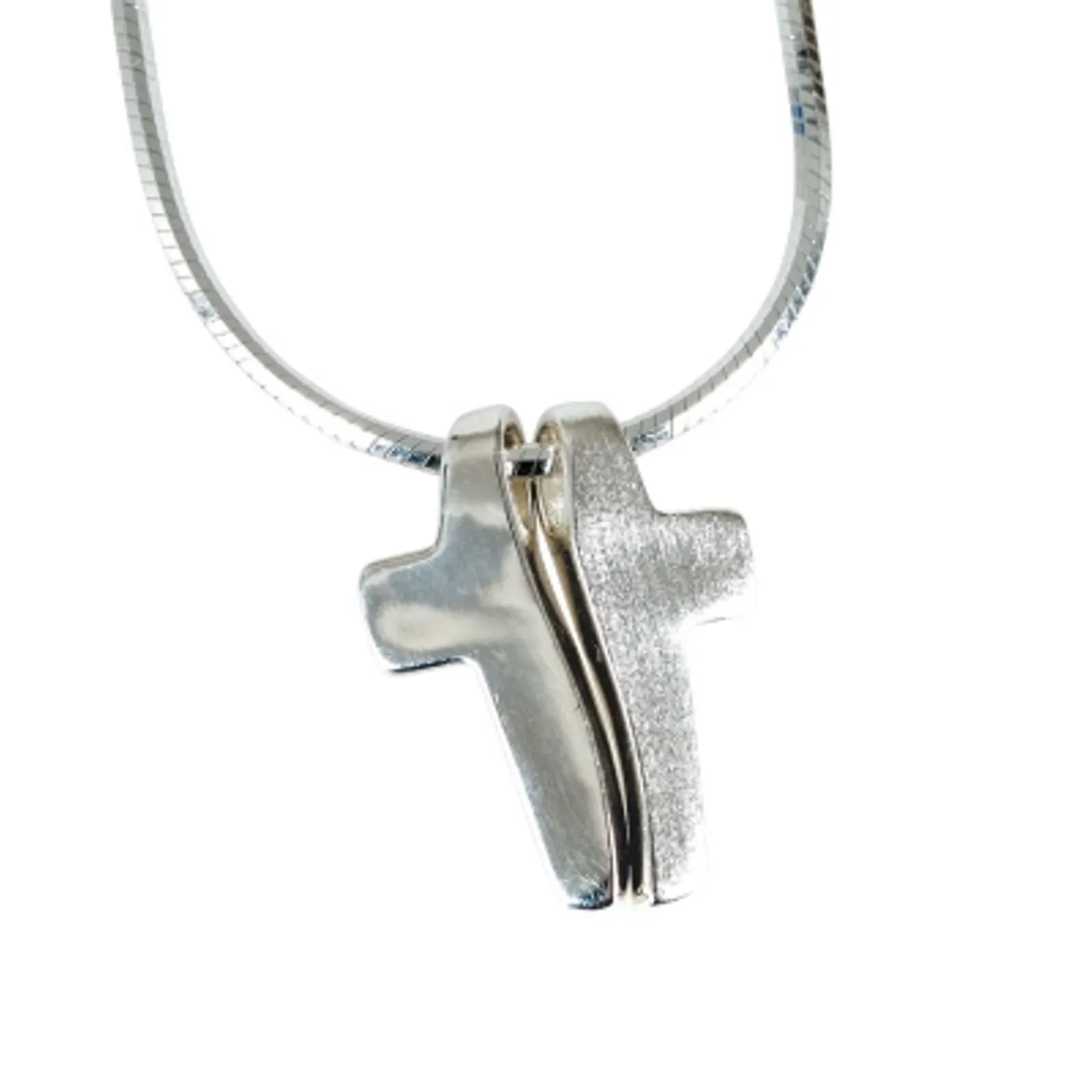 Anhänger und Kette aus 925 Silber, mit 2-teiligem Kreuz (matt/glänzend), ca. 1x1,5 cm, Kette Länge 45 cm, in Geschenketui