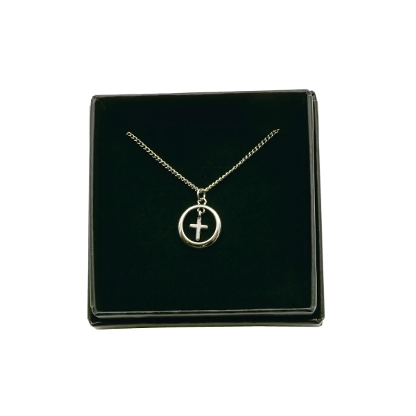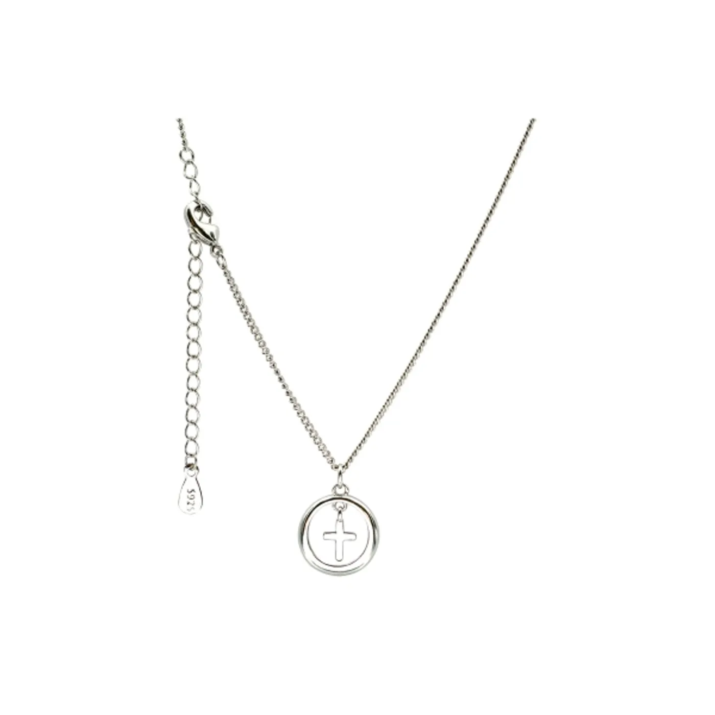 Elegante Halskette aus 925er Silber mit filigranem Kreuzanhänger. Das Kreuz ist von einem zarten Ring umschlossen.