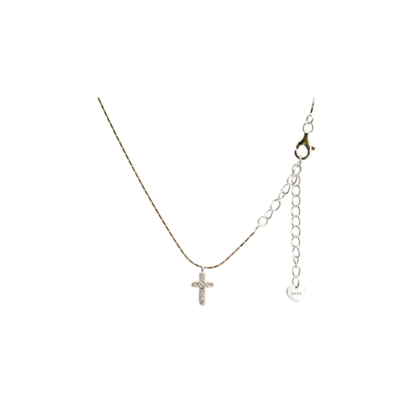 Elegante Halskette aus 925er Silber mit filigranem Kreuzanhänger, besetzt mit funkelnden Zirkonia-Steinen.