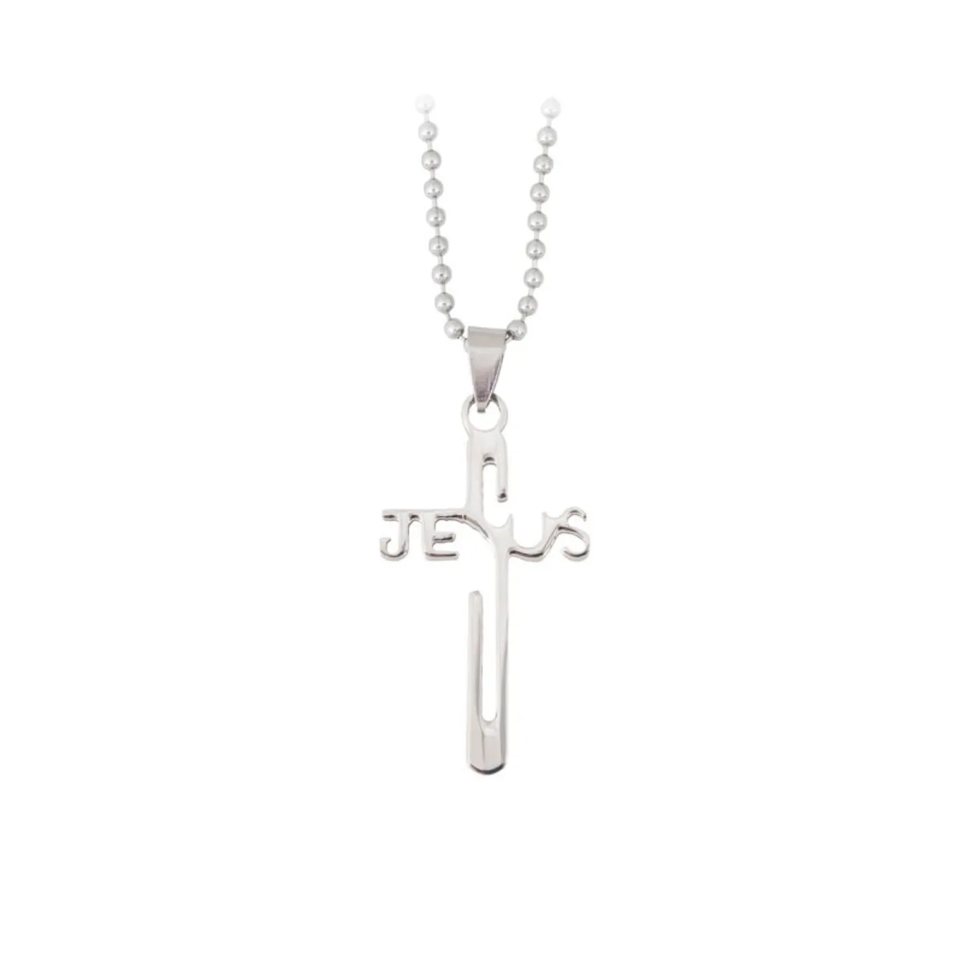 Der Anhänger Kreuz hat den Schriftzug Jesus im Kreuz integriert.