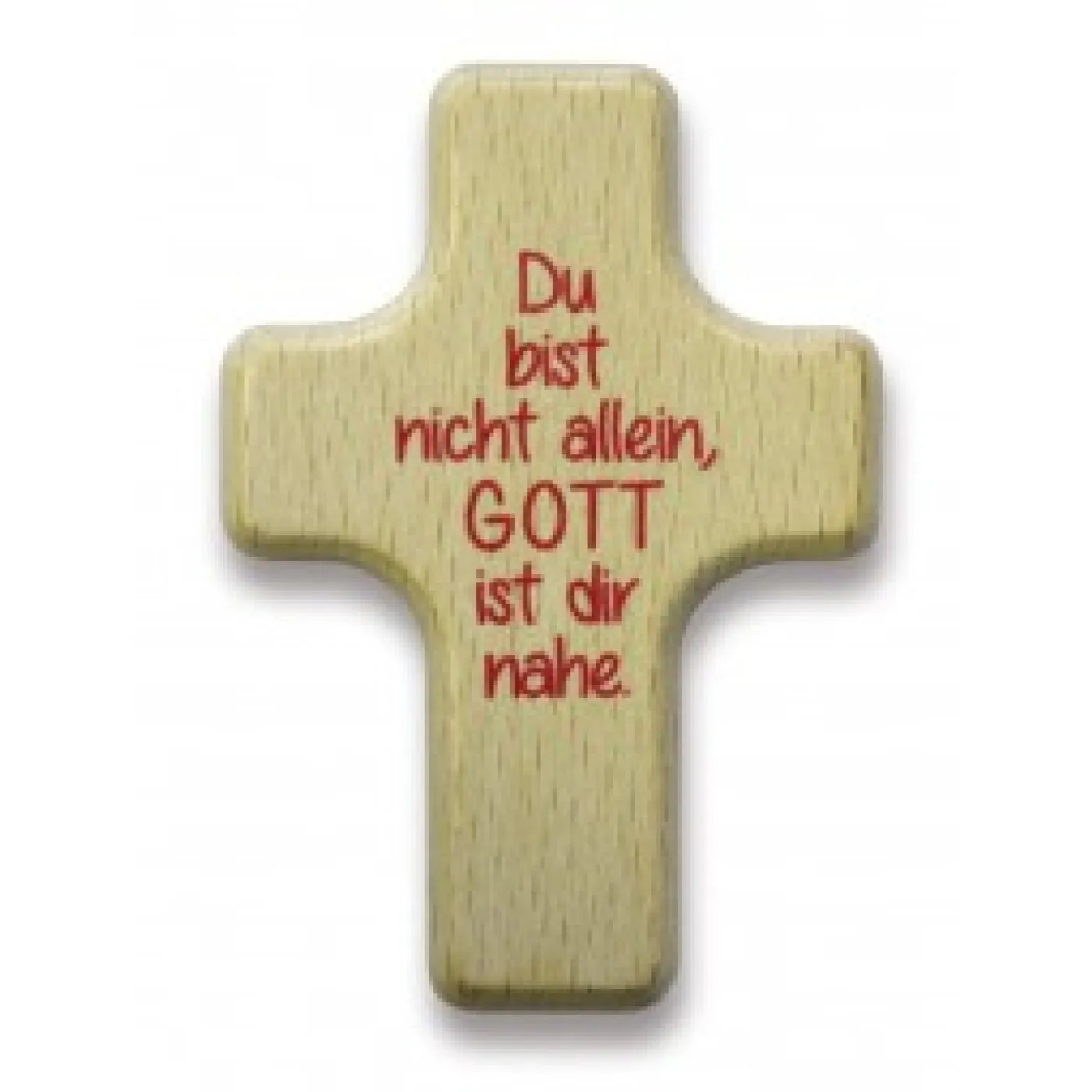 Handkreuz aus Holz mit einfarbigem Aufdruck "Du bist nicht allein, Gott ist dir nahe" , 4x6 cm