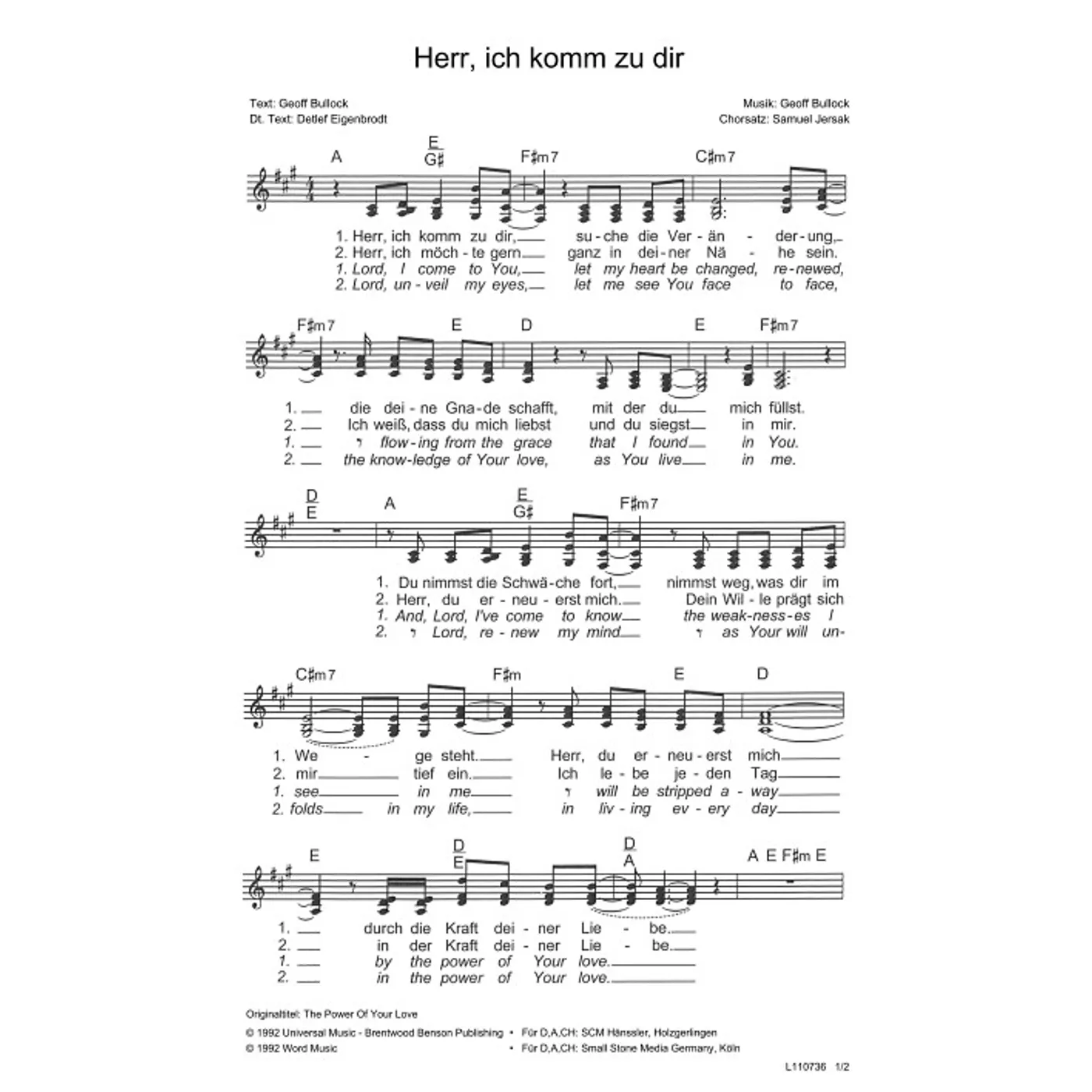 (Gemeindelied, modern, dreistimmig, gemischter Chor, mit Akkorden, A-Dur) Geoff Bullock (Komposition, Text), Samuel Jersak (Chorsatz), Detlef Eigenbrodt (Übersetzung)