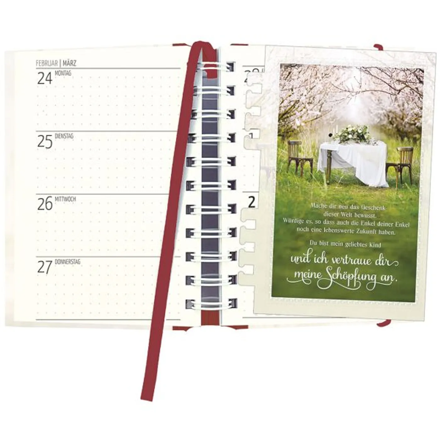 Spirelli-Kalender in trendiger Bildsprache, mit Mut machenden, christlichen Zusprüchen