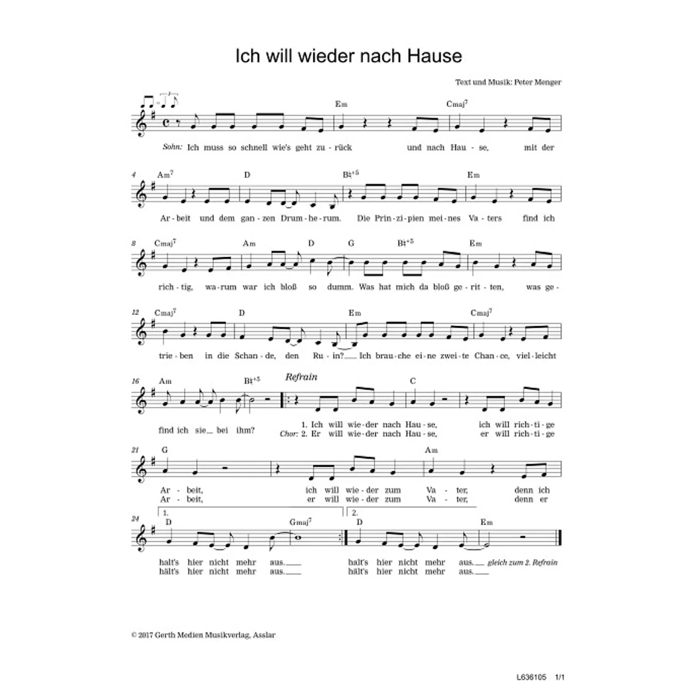 Ich will wieder nach Hause (Klavier, Klavierpartitur, Partituren, einstimmig, mit Akkorden, C-Dur, gleiche Reihe) Peter Menger (Klaviersatz) | Klavier, Klavierpartitur, Partituren, einstimmig, mit Akkorden, C-Dur, gleiche Reihe | 3,80 € |