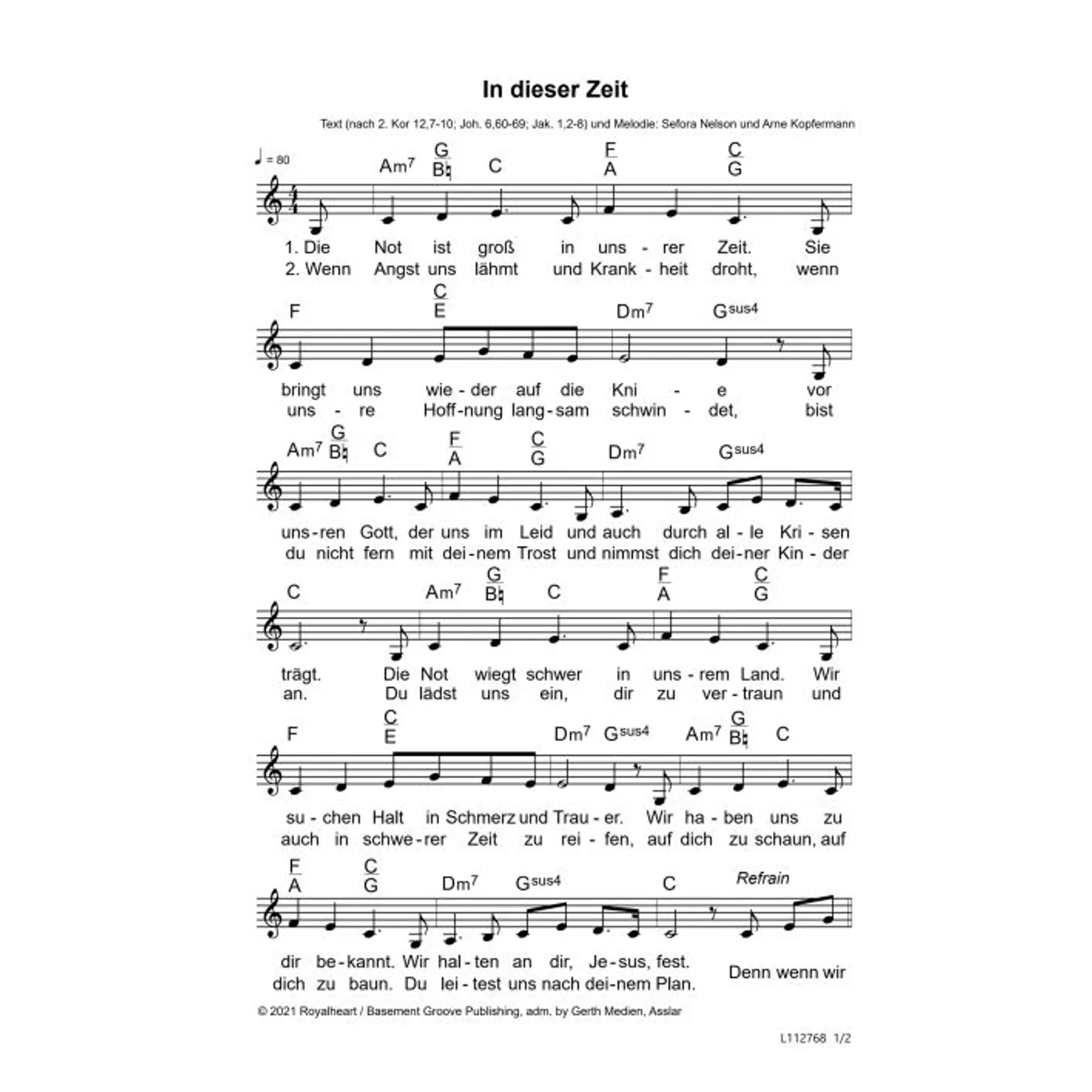 In dieser Zeit (diese Variante haben Sie gerade ausgewählt) (einstimmig, mit Akkorden, a-moll-Moll) Sefora Nelson (Komposition, Text), Arne Kopfermann (Text) |
