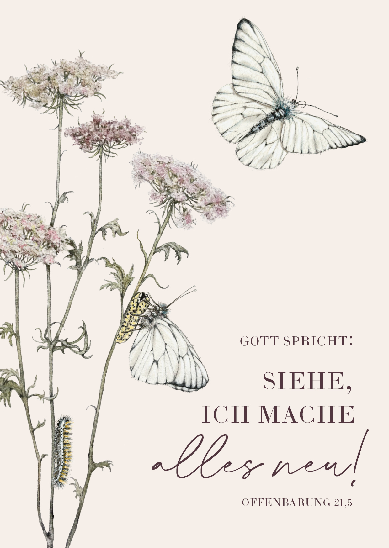 Schmetterlinge erzählen eine ganz eigene Geschichte von Verwandlung, neuem Leben und Neubeginn – und was könnte besser zur Jahreslosung für 2026 passen? Gott spricht: Siehe, ich mache alles neu! Offenbarung 21,5