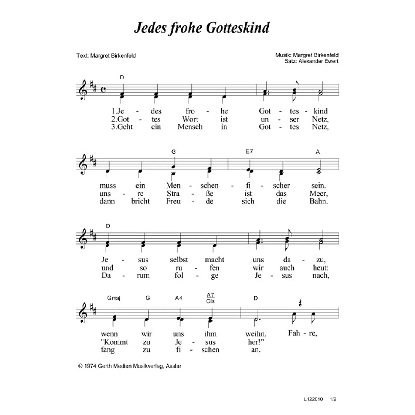 Jedes frohe Gotteskind (diese Variante haben Sie gerade ausgewählt) (Kinderchor, mit Akkorden, zweistimmig, D-Dur) Margret Birkenfeld (Komposition, Text), Alexander Ewert (Bearbeiter) |