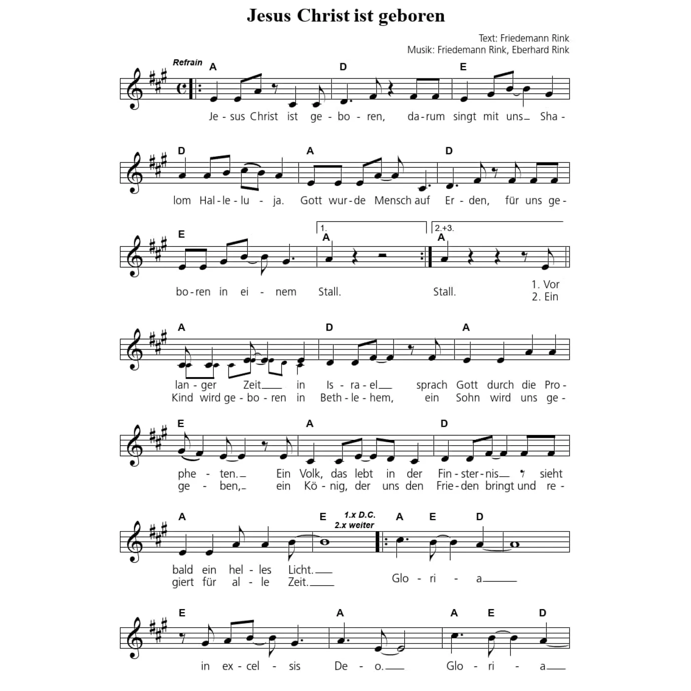Jesus Christ ist geboren (diese Variante haben Sie gerade ausgewählt) (Kinderlieder, einstimmig, A-Dur) Eberhard Rink (Melodie), Friedemann Rink (Text, Melodie) |