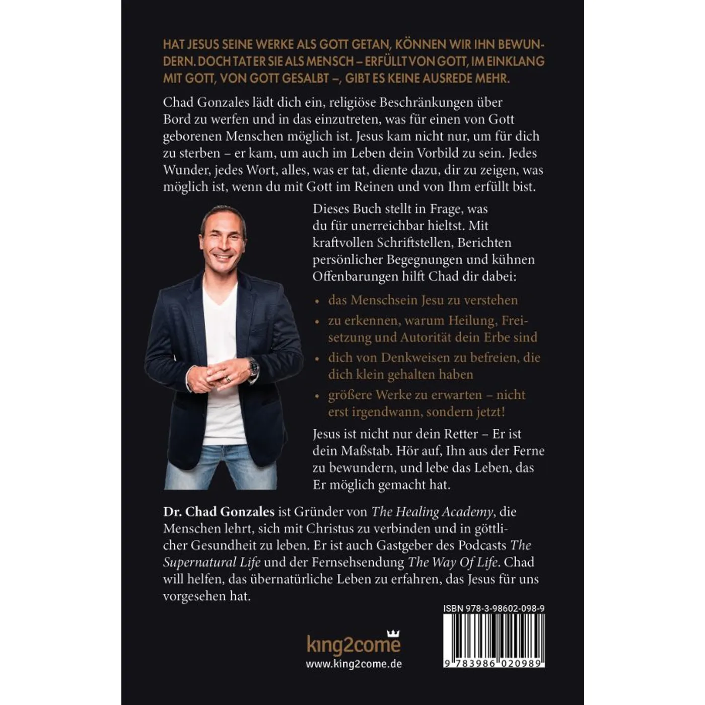 Chad Gonzales lädt dich ein, religiöse Beschränkungen über Bord zu werfen und in das einzutreten, was für einen von Gott geborenen Menschen möglich ist. Jesus kam nicht nur, um für dich zu sterben – er kam, um auch im Leben dein Vorbild zu sein. Jedes Wunder, jedes Wort, alles, was er tat, diente dazu, dir zu zeigen, was möglich ist, wenn du mit Gott im Reinen und von Ihm erfüllt bist.
