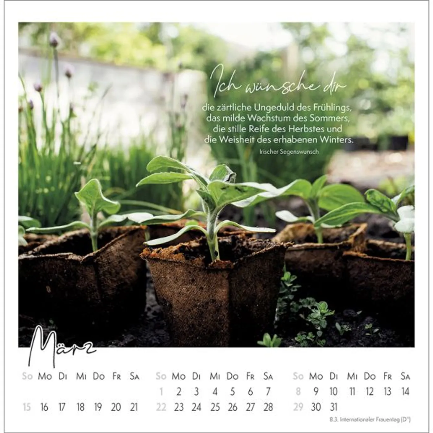 Schönes Wetter, die Luft riecht frisch. Die Sonne scheint. Der ideale Zeitpunkt für einen Ausflug in die Natur. Unser neuer Kalender “Auszeit im Grünen” bringt Ihnen ein wenig davon in Ihre eigenen vier Wände.