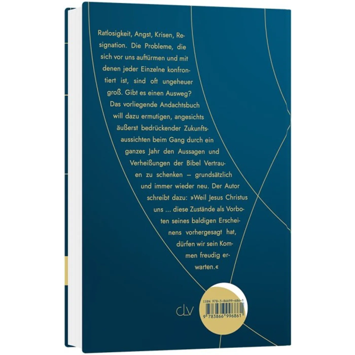 Das vorliegende Andachtsbuch will dazu ermutigen, angesichts äußerst bedrückender Zukunftsaussichten beim Gang durch ein ganzes Jahr den Aussagen und Verheißungen der Bibel Vertrauen zu schenken – grundsätzlich und immer wieder neu. Der Autor schreibt dazu: »Weil Jesus Christus uns … diese Zustände als Vorboten seines baldigen Erscheinens vorhergesagt hat, dürfen wir sein Kommen freudig erwarten.«