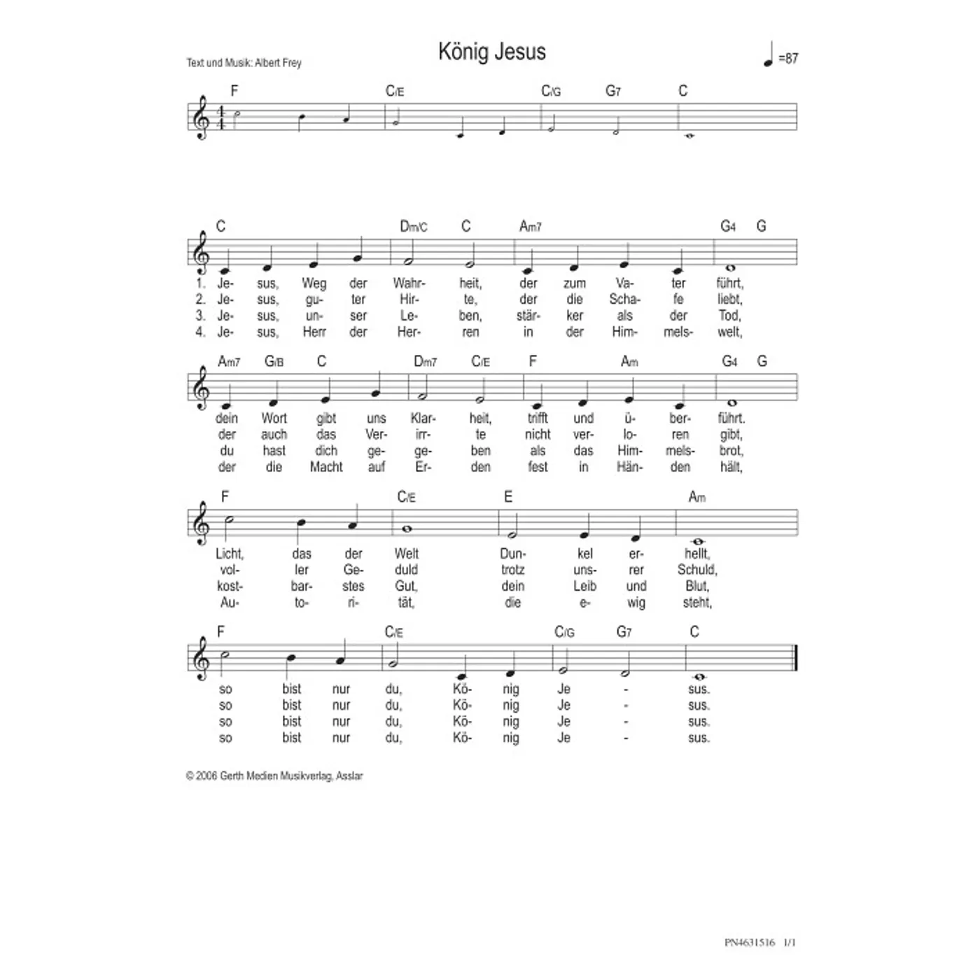 König Jesus (diese Variante haben Sie gerade ausgewählt) (einstimmig, mit Akkorden, C-Dur) Albert Frey (Komposition, Text) |