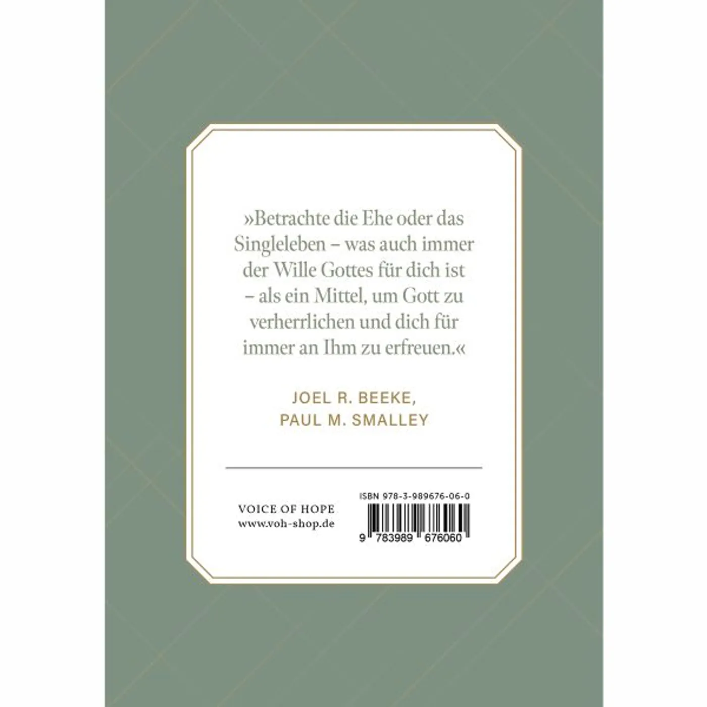 Joel R. Beeke und Paul M. Smalley erklären biblische Wahrheiten über das Singlesein und geben seelsorgerliche, praktische Ratschläge, wie man ein Gott verherrlichendes Leben führen kann. Sie zeigen, wie Singles in der Gemeinde ihr Singlesein als den Willen Gottes für sie erkennen können und als ein Mittel, Gott für immer zu verherrlichen und sich an Ihm zu erfreuen.