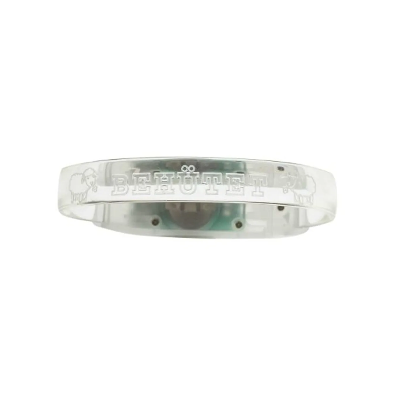 Graviert sind die Bänder mit zwei niedlichen Schäfchen und dem Wort „BEHÜTET“. Insgesamt stehen 4 verschiedene Armbandfarben und 3 verschiedene Licht-Modi zur Auswahl: langsames und schnelles Blinken sowie Dauerleuchten. Die Armbänder werden mit austauschbaren Batterien (CR1220) geliefert.