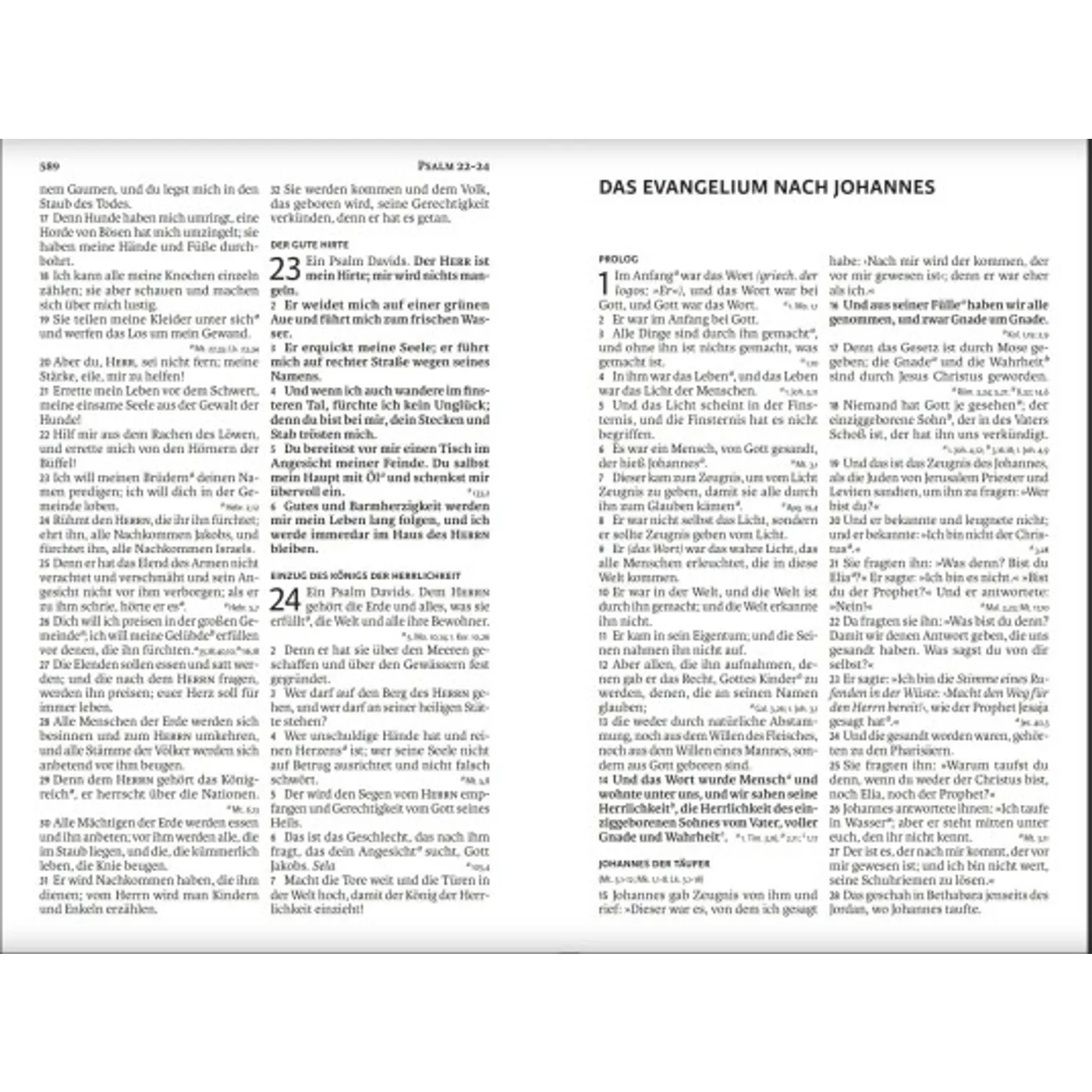 Schon 1522 hat Martin Luther bei der Übersetzung des Neuen Testamentes "dem Volk aufs Maul geschaut". Seine kraftvolle Ausdrucksweise prägte die Weiterentwicklung der deutschen Sprache, Bildung und Kultur. Auch für diese Textüberarbeitung von 2017 gilt das Prinzip, eine gut verständliche, in unsere Zeit sprechende Übersetzung zu schaffen.