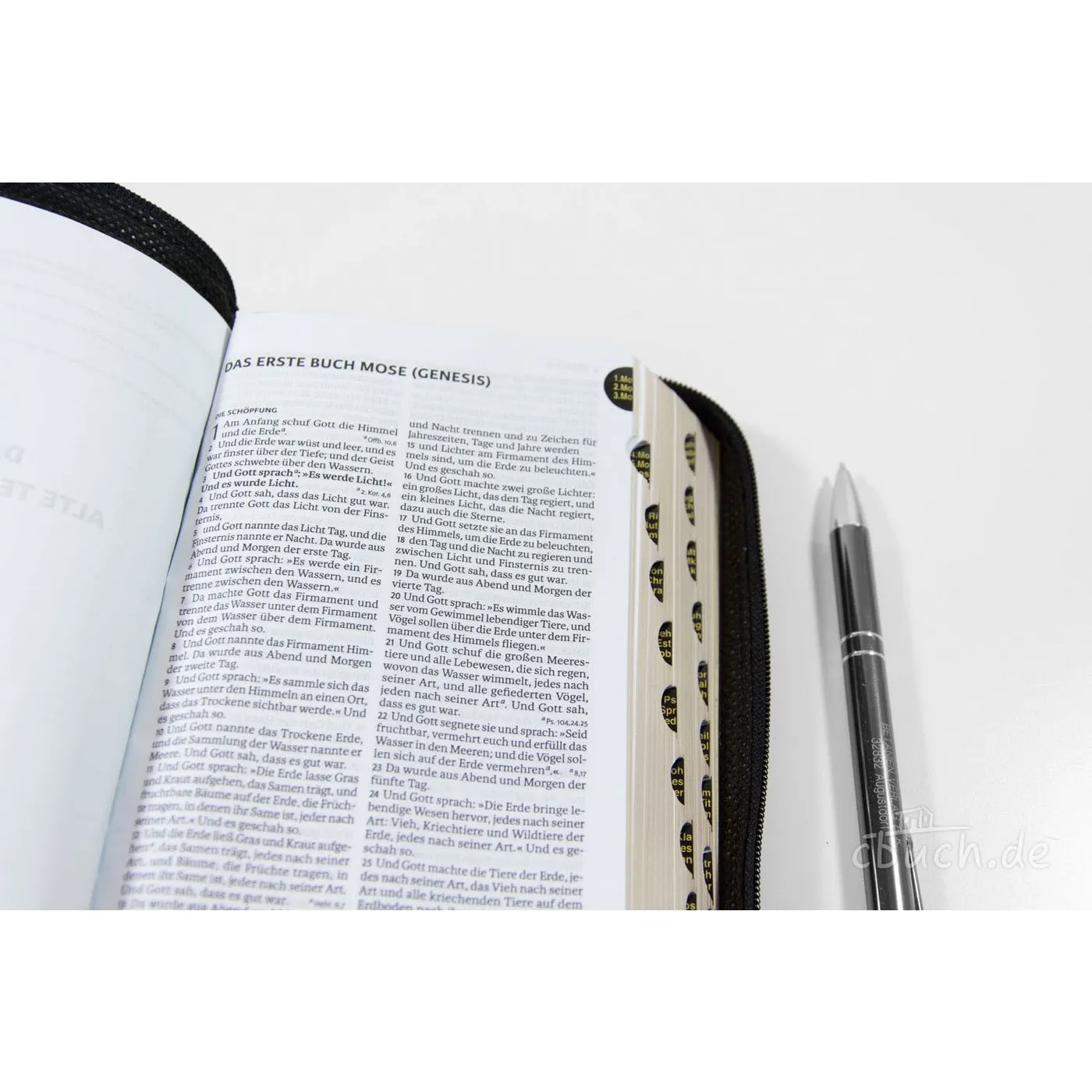 Die Herausgeber halten bewusst am reformatorischen Urtext fest. Begründete Hinweise neuerer Forschung und berechtigte Textänderungen wurden geprüft und ggf berücksichtigt. Ideologische oder durch den Zeitgeist begründete Veränderungen dagegen wurden abgelehnt. Das wichtigste Anliegen bleibt neben der Urtextnähe die Verständlichkeit des Textes für heutige Lesen. (Verlagstext)