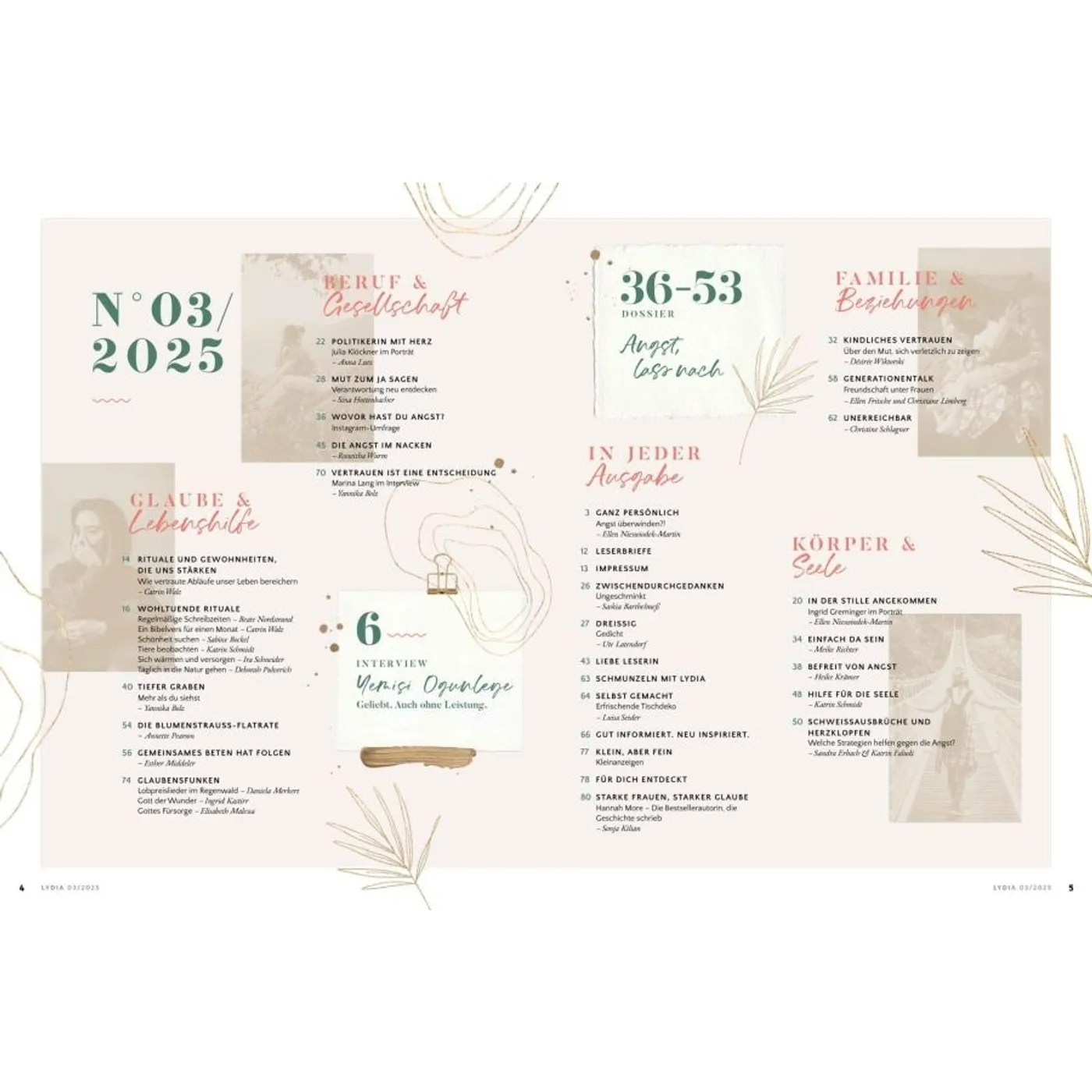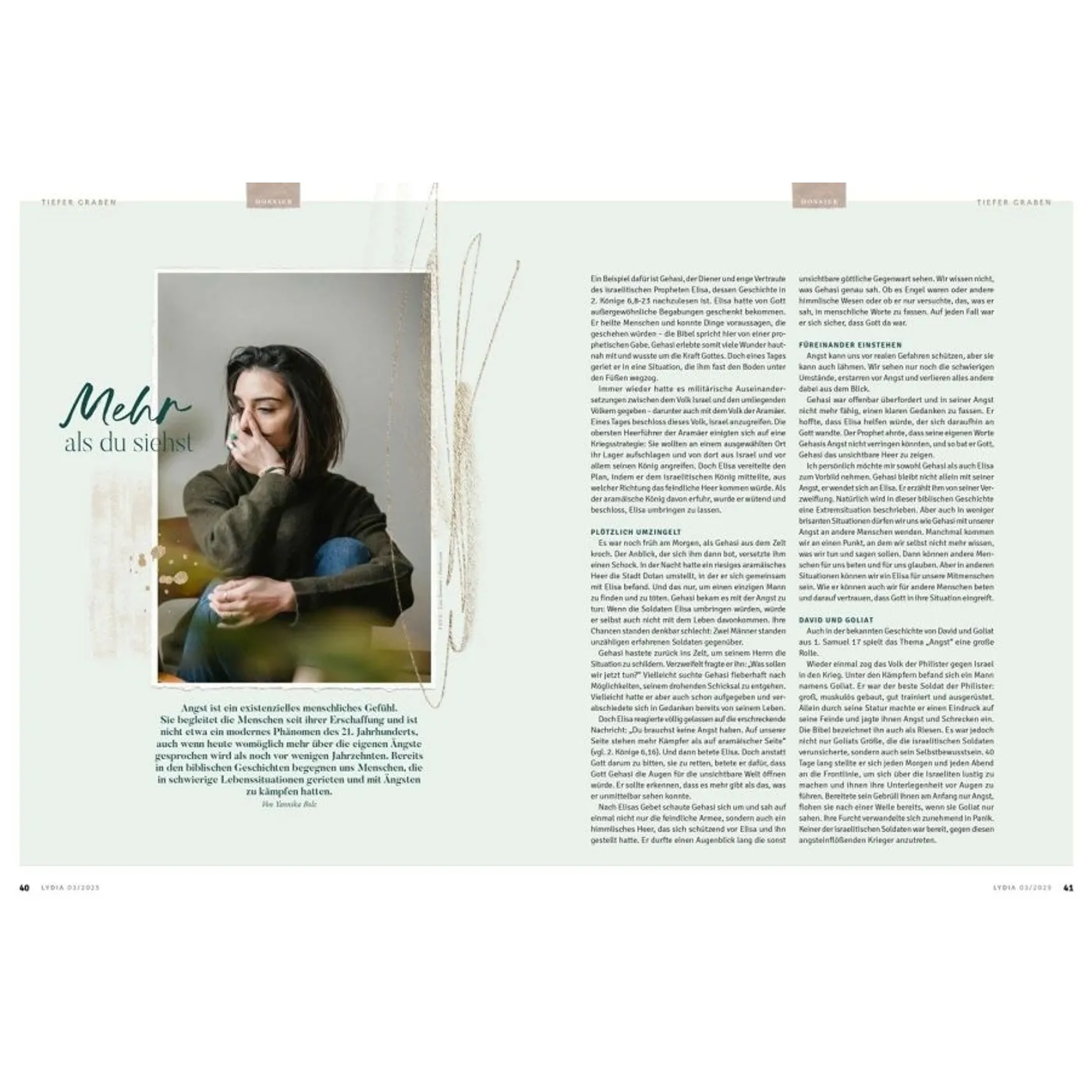Lydia lädt Frauen ein, das Leben zu teilen und miteinander unterwegs zu sein. In den schönen Momenten aber auch in Zeiten der Angst und Sorge weist sie auf den hin, der Hoffnung und Sinn gibt: Jesus. Die Zeitschrift begleitet und ermutigt Frauen in den verschiedenen Lebensphasen – über die Grenzen von Konfessionen und Generationen hinweg. Auf dieser Plattform können Frauen voneinander lernen und sich gegenseitig beraten, egal ob Single, junge Mutter, Berufstätige oder Seniorin. Durch persönliche Erfahrungsberichte und Ratgeberartikel erleben die Leserinnen Gottes Handschrift ganz nahbar und bekommen wertvolle Impulse für den Alltag. Lydia bietet 4 x im Jahr: • Ermutigung im Glauben & Lebenshilfe durch den Austausch mit anderen Frauen • Geistliche Impulse, die Körper & Seele stärken • Ehrliche Einblicke, wie Familie & Beziehungen gelebt werden können • Inspirierende Berichte, wie Frauen in Beruf & Gesellschaft einen Unterschied machen Was Lydia-Leserinnen sagen: „Ich finde es so wunderbar, dass in Lydia mutige Frauen ihre Geschichte teilen und mir die Möglichkeit geben, ganz echt, nahbar und tief in ihr Leben hineinzuschauen. Lydia schafft es, eine große Breite an Themen aufzustellen und diese mit so wertvollem Input zu füllen. Für jede ist etwas dabei!“ Ronja Aselmann Egal, ob zum Muttertag, zu Weihnachten, zum Geburtstag, als Dankeschön oder einfach nur so: Ein Lydia-Abo ist eine wertvolle Geschenkidee für die beste Freundin, Schwester, Mutter, Tochter oder andere Wegbegleiterinnen. Als Lydia-Botschafterin können Sie Hefte weitergeben, um mithilfe der Zeitschrift anderen Frauen von Jesus zu erzählen.