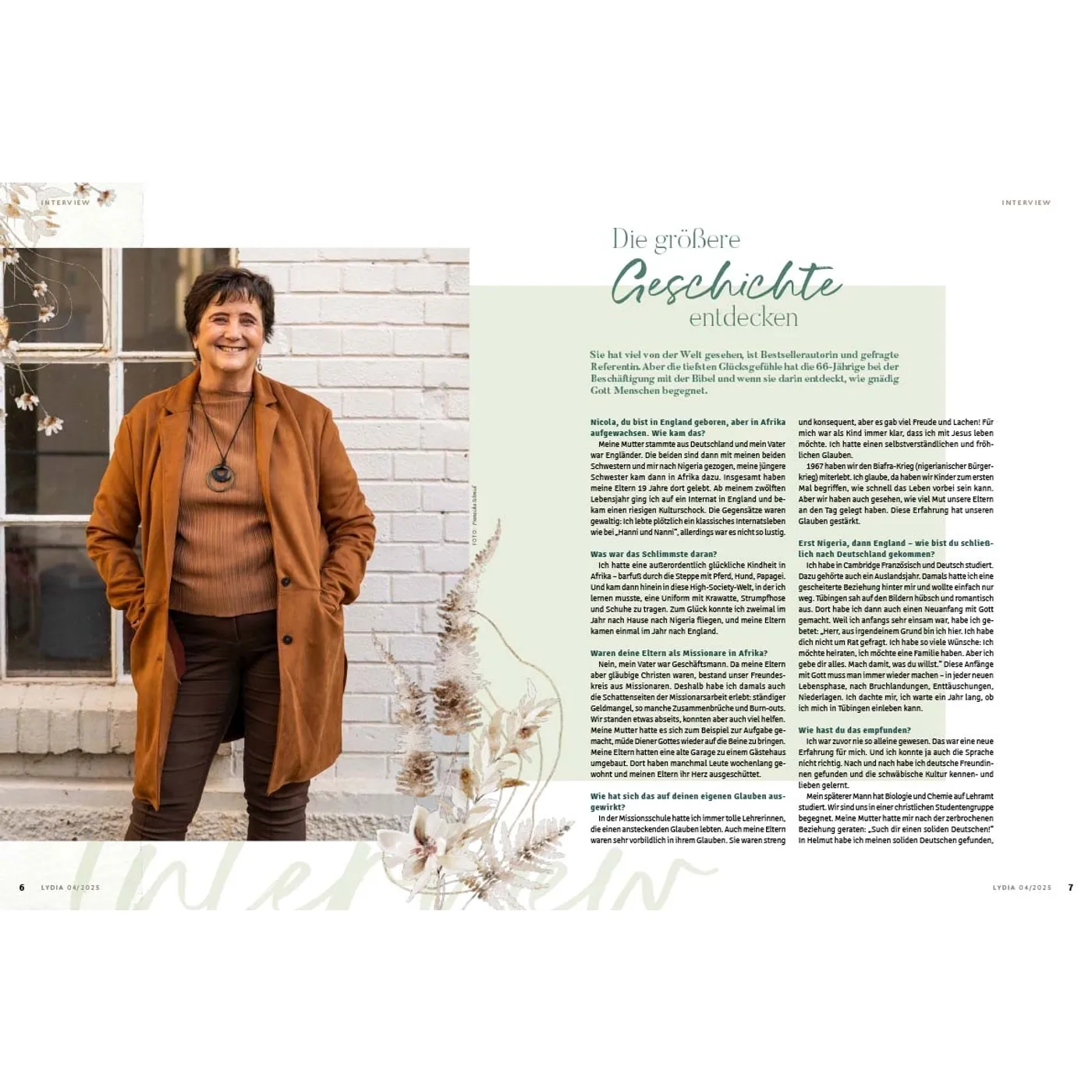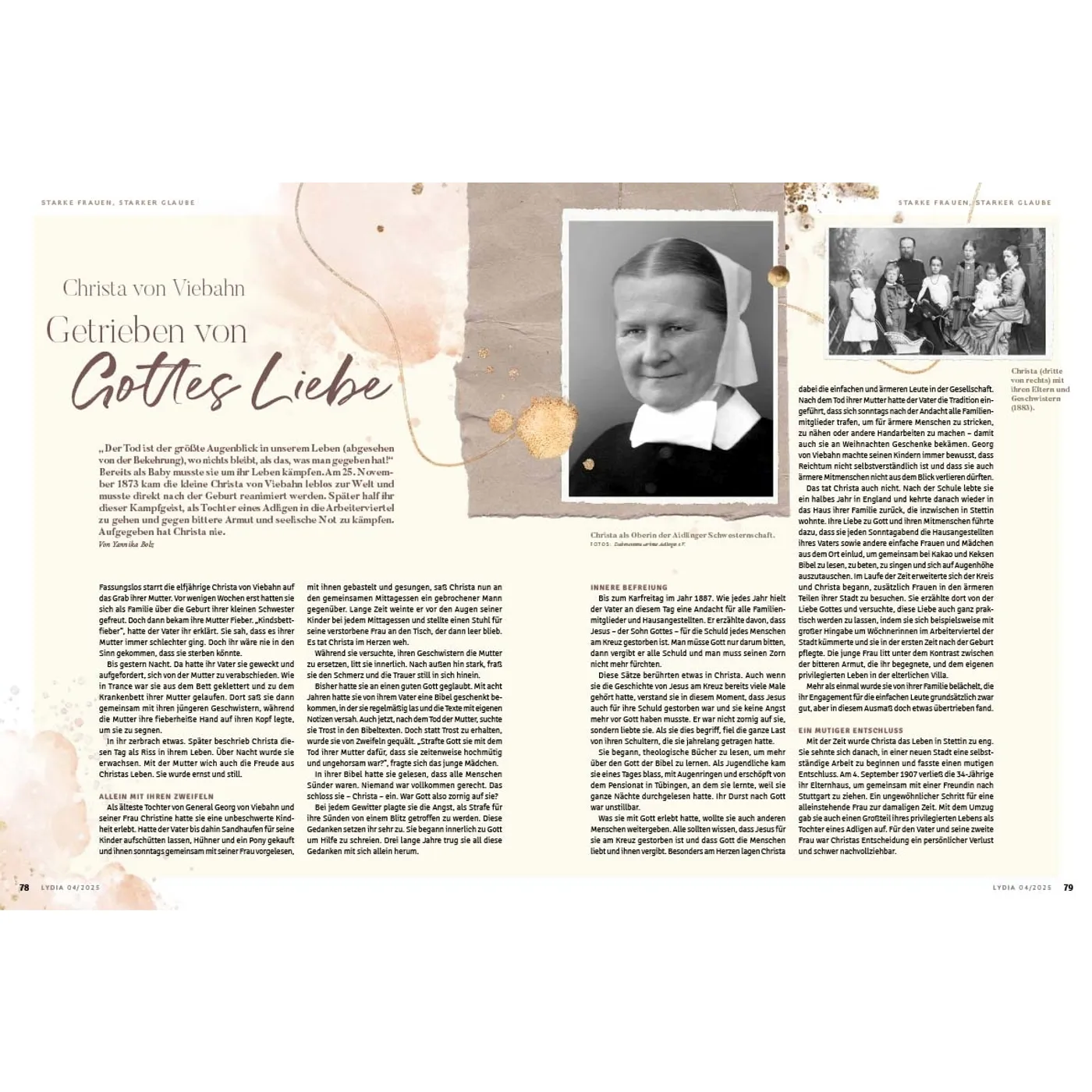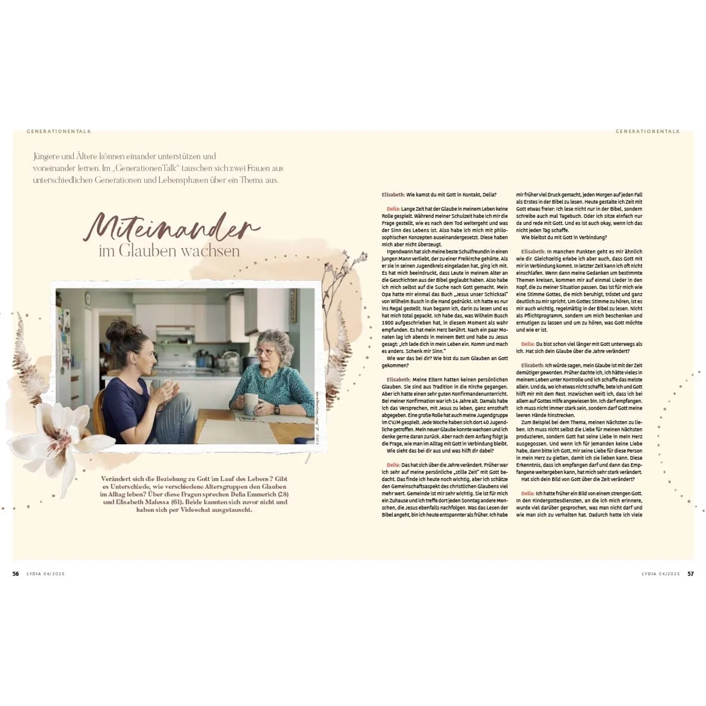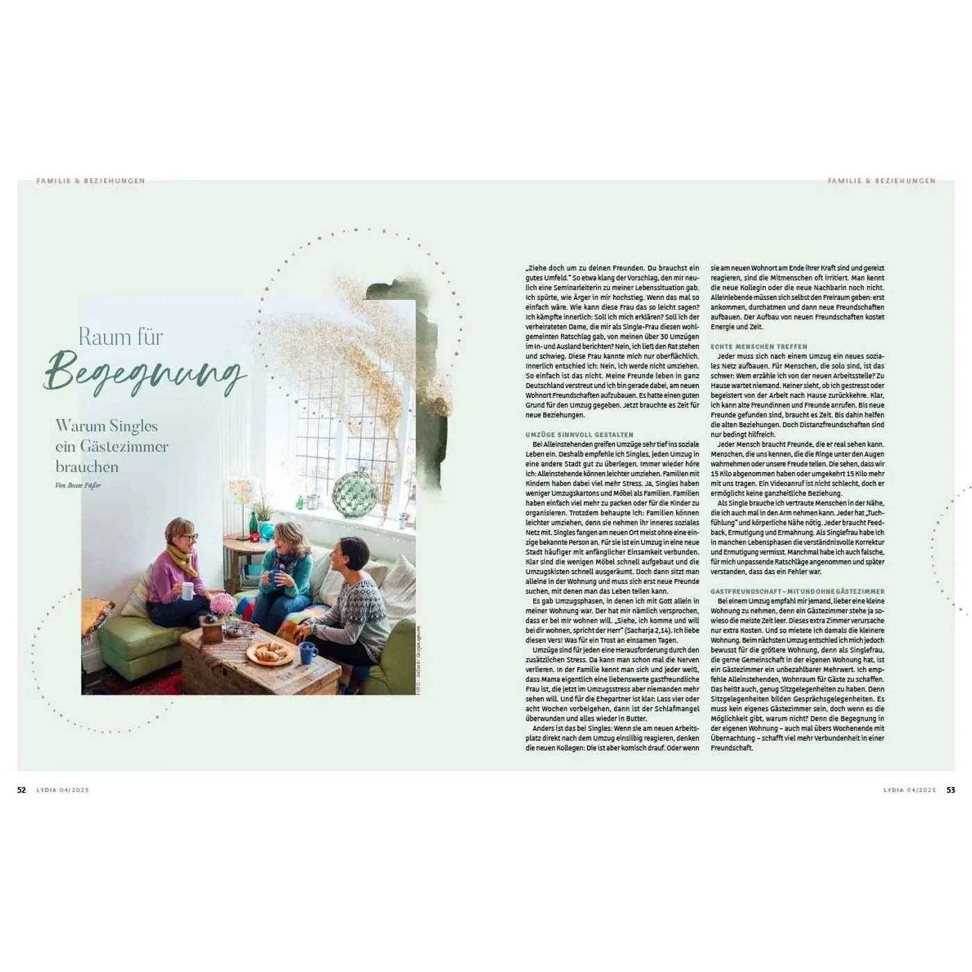 Lydia lädt Frauen ein, das Leben zu teilen und miteinander unterwegs zu sein. In den schönen Momenten aber auch in Zeiten der Angst und Sorge weist sie auf den hin, der Hoffnung und Sinn gibt: Jesus. Die Zeitschrift begleitet und ermutigt Frauen in den verschiedenen Lebensphasen – über die Grenzen von Konfessionen und Generationen hinweg. Auf dieser Plattform können Frauen voneinander lernen und sich gegenseitig beraten, egal ob Single, junge Mutter, Berufstätige oder Seniorin. Durch persönliche Erfahrungsberichte und Ratgeberartikel erleben die Leserinnen Gottes Handschrift ganz nahbar und bekommen wertvolle Impulse für den Alltag. Lydia bietet 4 x im Jahr: • Ermutigung im Glauben & Lebenshilfe durch den Austausch mit anderen Frauen • Geistliche Impulse, die Körper & Seele stärken • Ehrliche Einblicke, wie Familie & Beziehungen gelebt werden können • Inspirierende Berichte, wie Frauen in Beruf & Gesellschaft einen Unterschied machen Was Lydia-Leserinnen sagen: „Ich finde es so wunderbar, dass in Lydia mutige Frauen ihre Geschichte teilen und mir die Möglichkeit geben, ganz echt, nahbar und tief in ihr Leben hineinzuschauen. Lydia schafft es, eine große Breite an Themen aufzustellen und diese mit so wertvollem Input zu füllen. Für jede ist etwas dabei!“ Ronja Aselmann Egal, ob zum Muttertag, zu Weihnachten, zum Geburtstag, als Dankeschön oder einfach nur so: Ein Lydia-Abo ist eine wertvolle Geschenkidee für die beste Freundin, Schwester, Mutter, Tochter oder andere Wegbegleiterinnen. Als Lydia-Botschafterin können Sie Hefte weitergeben, um mithilfe der Zeitschrift anderen Frauen von Jesus zu erzählen.