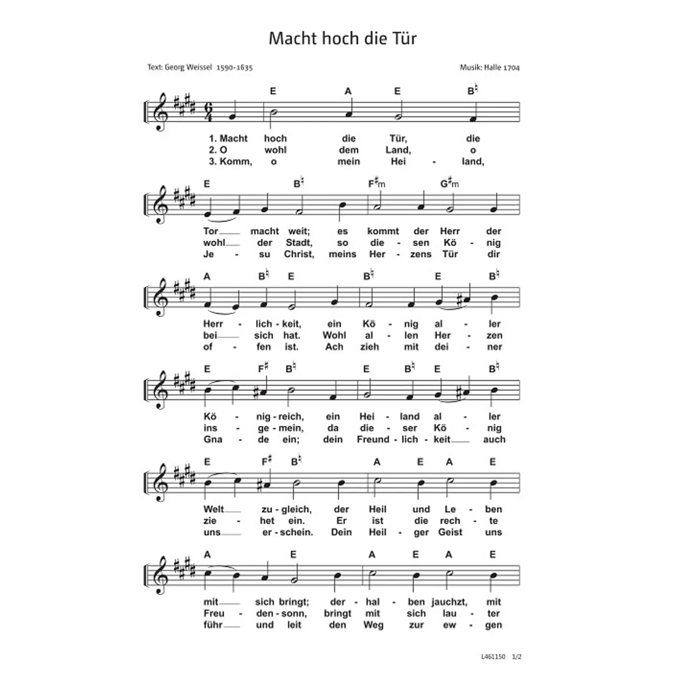 Macht hoch die Tür (diese Variante haben Sie gerade ausgewählt) (Gemeindelied, traditionell, einstimmig, mit Akkorden, E-Dur) Georg Weissel (Text) |