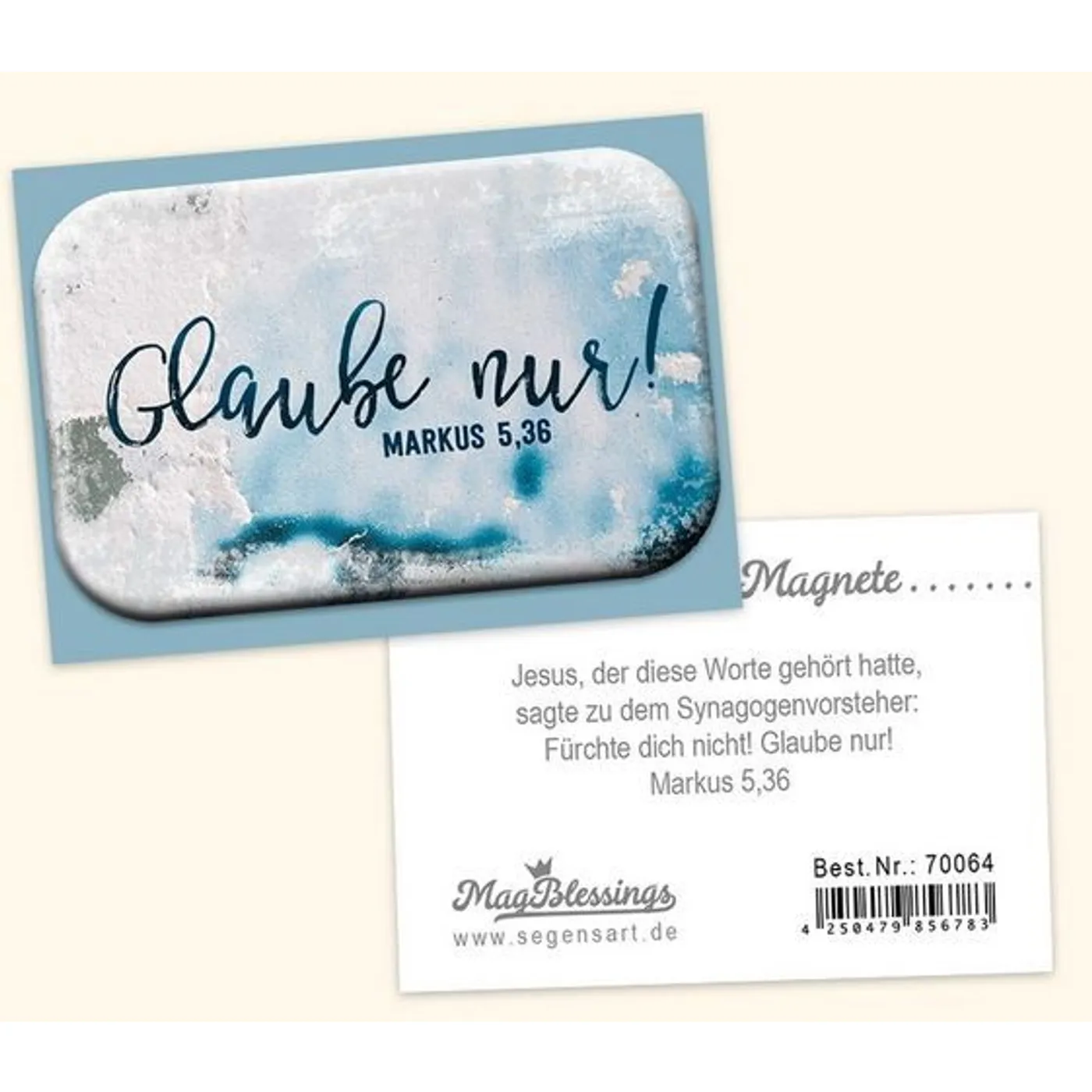 ist das Motiv des Magneten zu sehen, auf der Rückseite befindet sich ein passendes Bibelzitat.