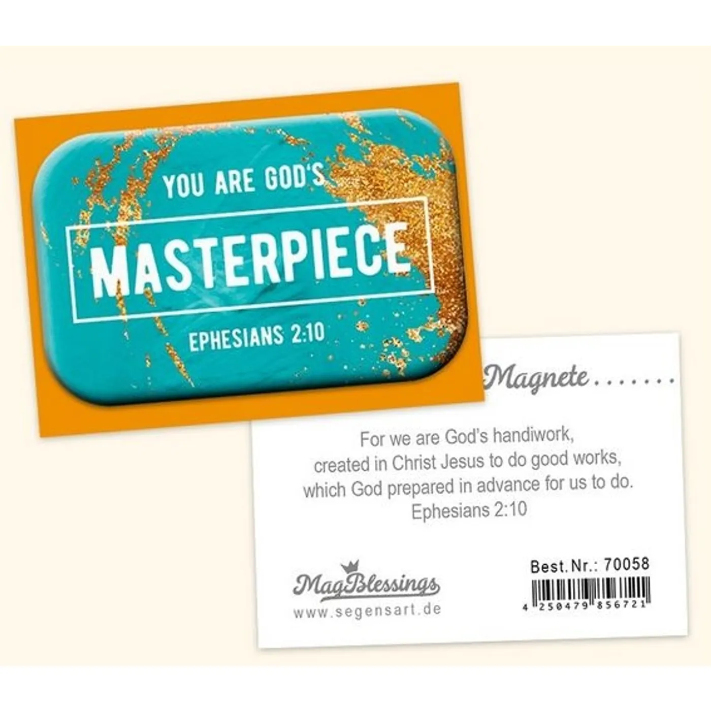 ist das Motiv des Magneten zu sehen, auf der Rückseite befindet sich ein passendes Bibelzitat.