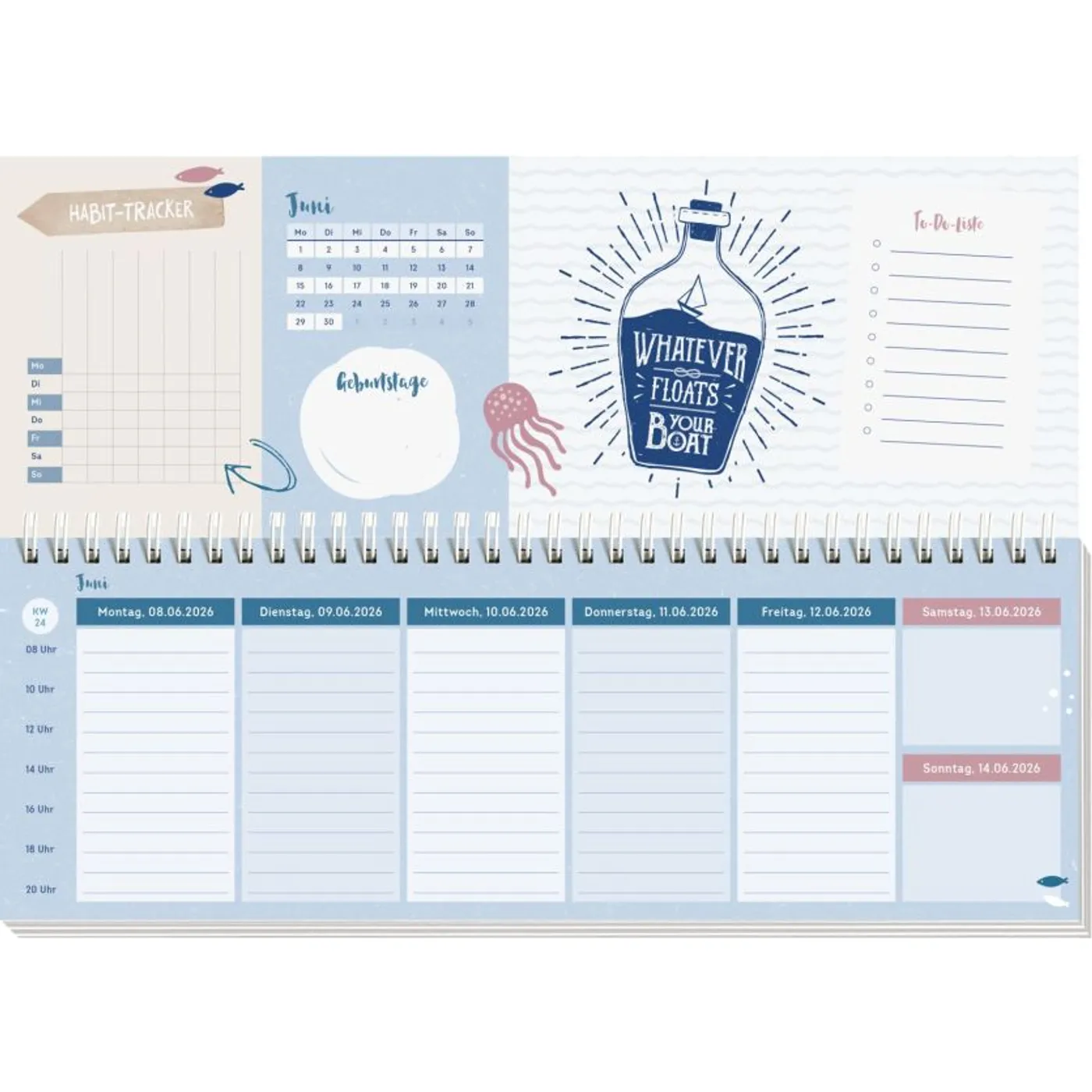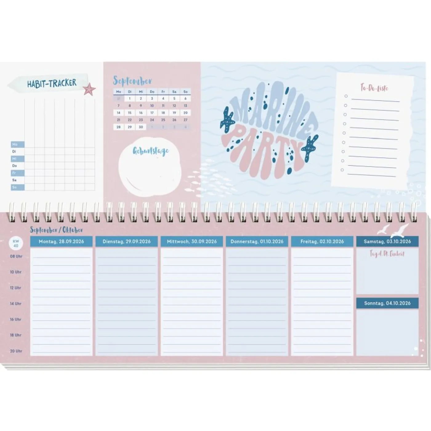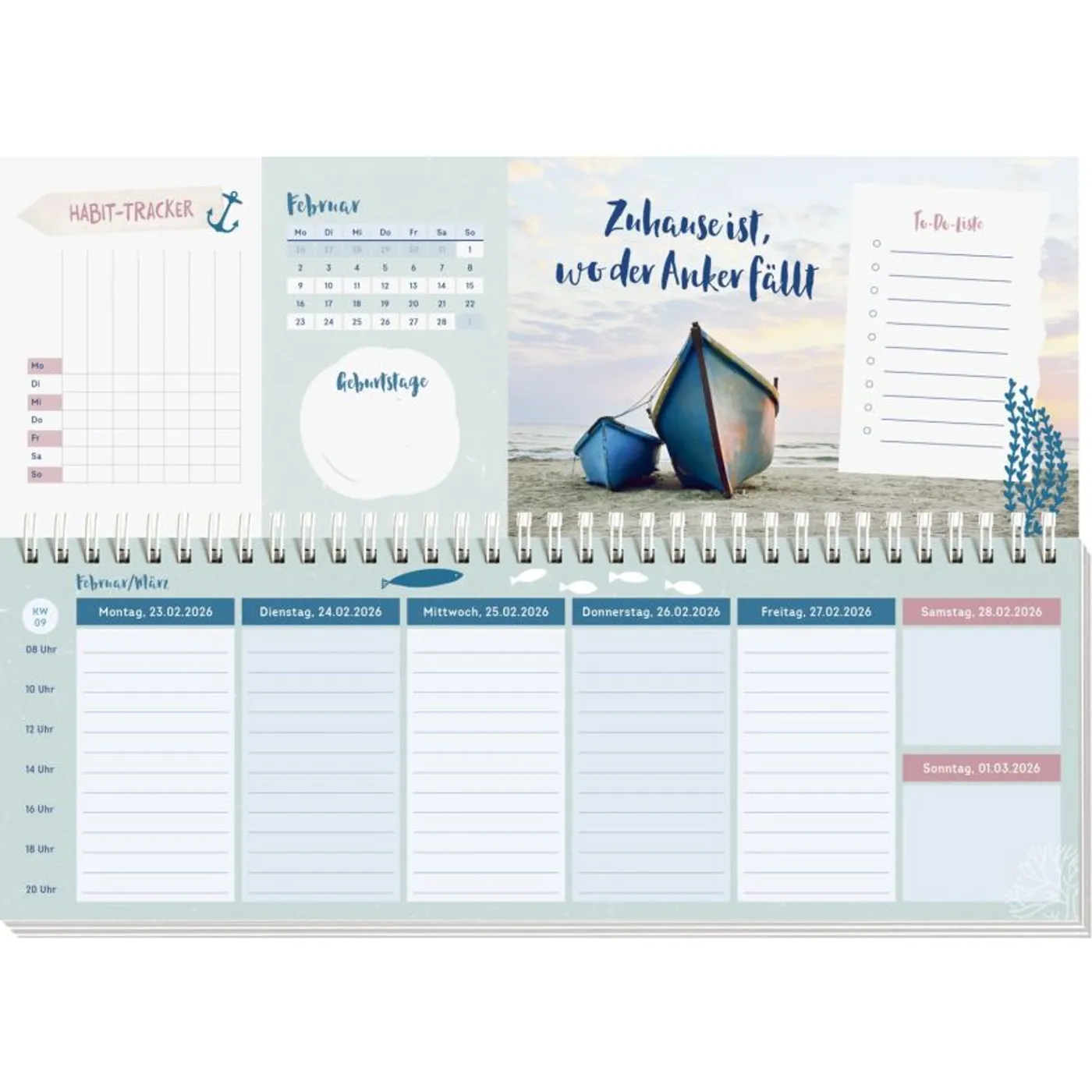- Terminkalender/-planer 2026 Meer mit Spiralbindung für einfaches Umblättern und flaches Auflegen auf dem Schreibtisch
