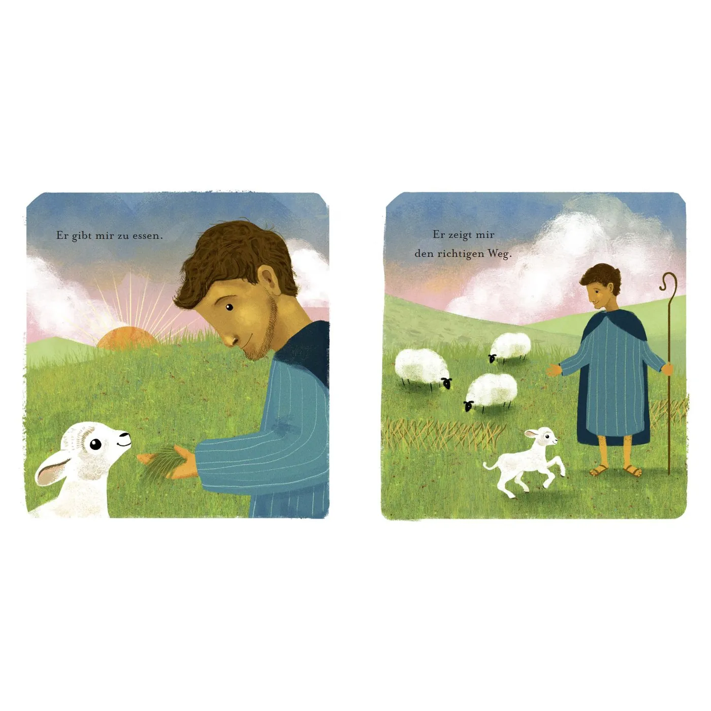 Der Psalm "Der gute Hirte" wird hier auf eine kindgerechte Art erzählt. Der Text ist dabei sehr kurz, aber auch sehr verständlich. Man muss hier nichts erklären. Unsere Tochter hat die Botschaft, dass Gott immer bei uns ist und sich um uns kümmert, sofort verstanden.