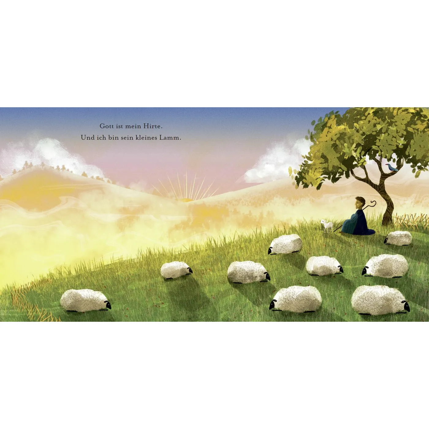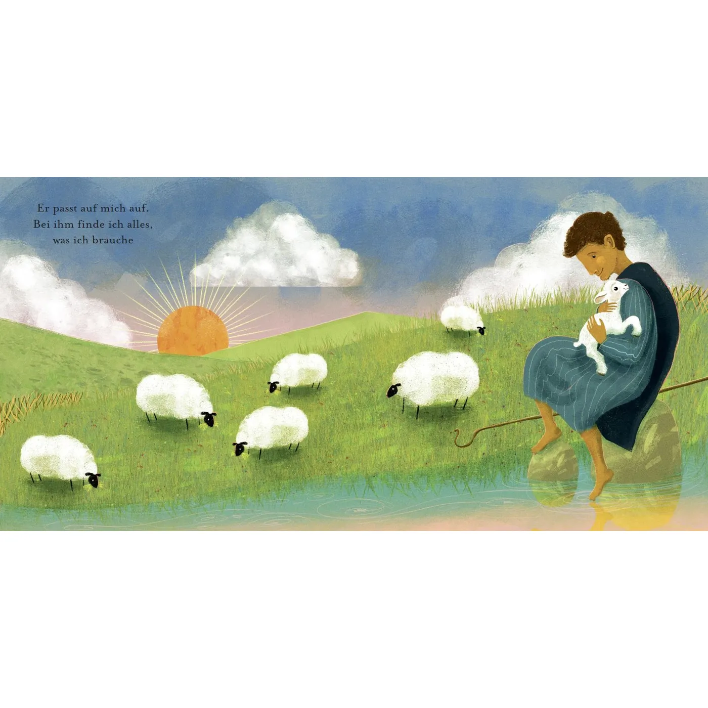 Die textliche Umsetzung des bekannten Psalm 23 ist toll – eine einfache, kindgerechte Sprache, die (bis auf eine entscheidende Ausnahme) das erfasst, was im Original steht.