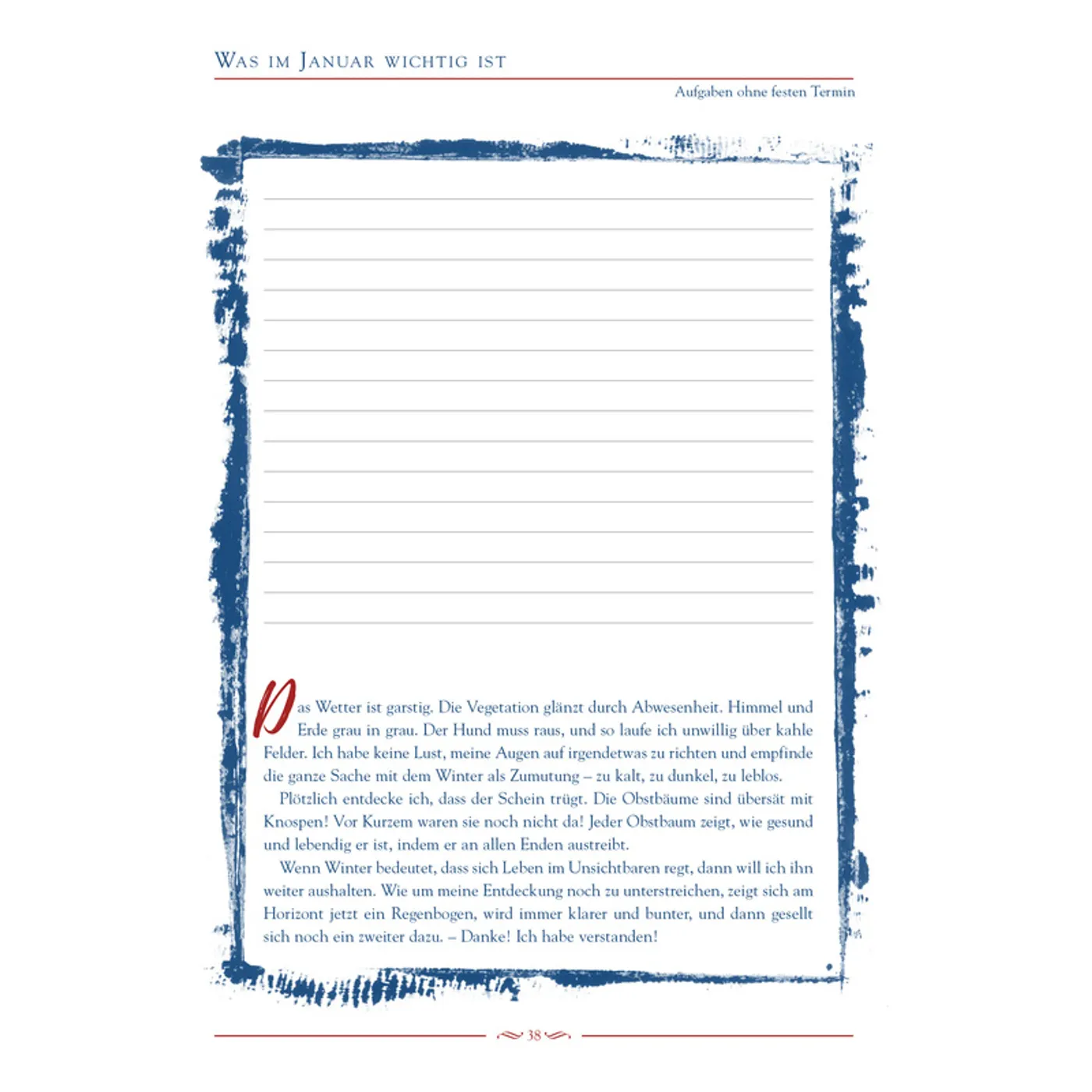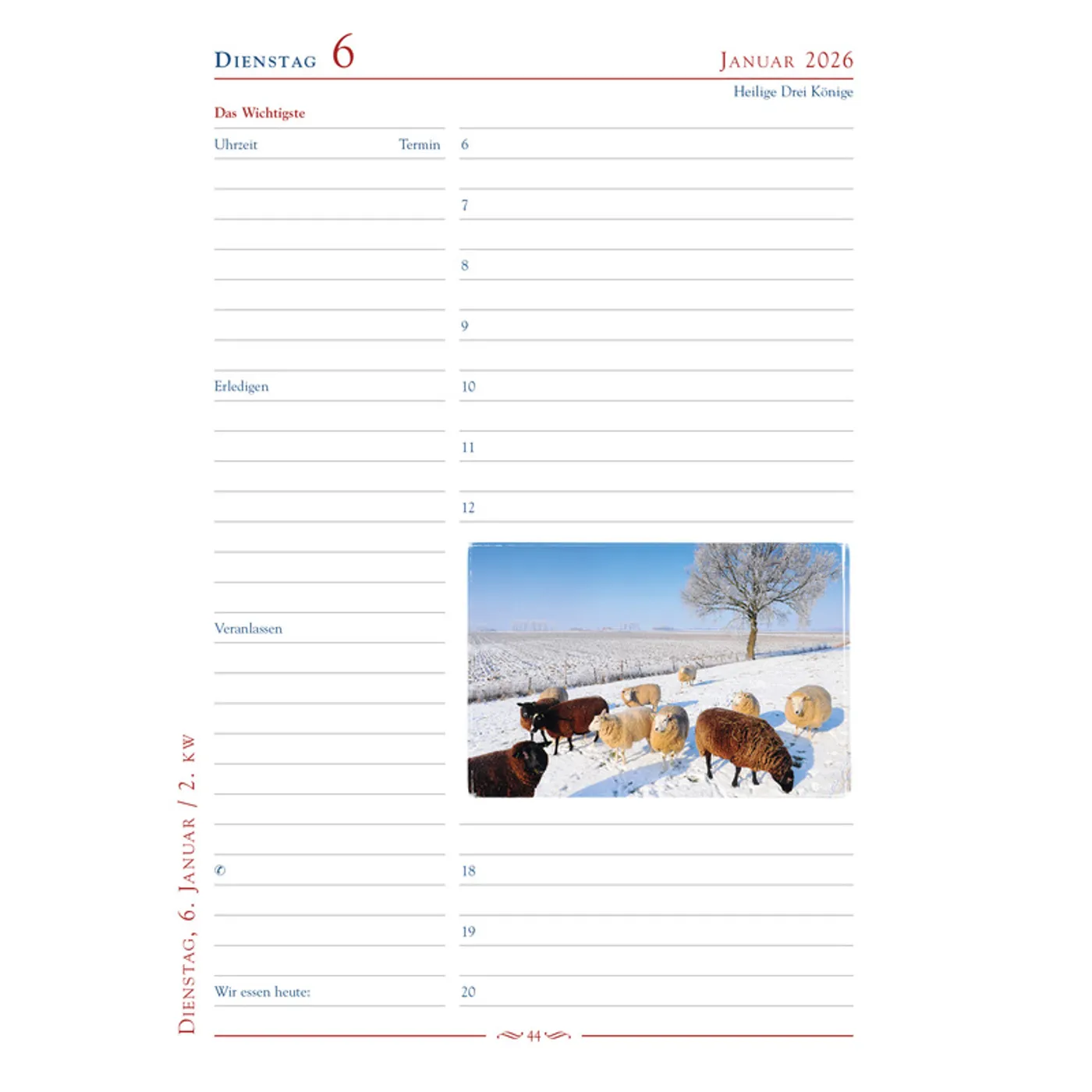 Seit vielen Jahren ist dieser Kalender mein Begleiter . Sein Aufbau, die Gliederung des Tagesplaners und die kleinen Verse aus der Bibel sind einfach wunderbar.