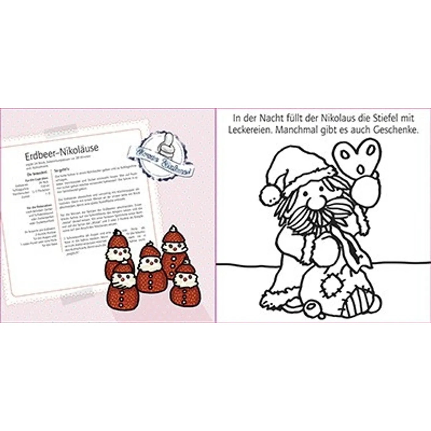 48 Seiten Mal- und Lesespaß. Motive als Ausmalvorlage, farbig gestaltete Rezeptvorschläge und Bastelanleitungen für die Vorweihnachtszeit! 48 Seiten.