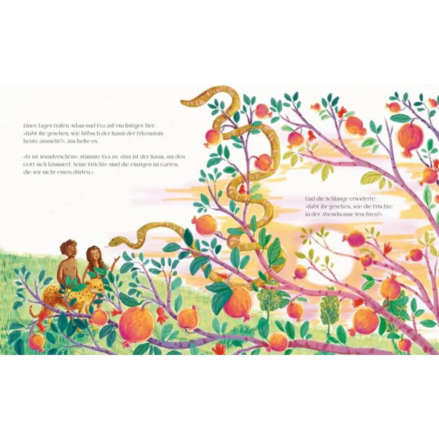 Adam und Eva leben gern im Paradies, wenn nur die verbotene Frucht nicht wäre. Der kleine Mose wächst im Palast des Pharaos auf. Eines Tages wird er das Volk Israel anführen. Und in einem Stall in Betlehem kommt Jesus zur Welt – ein besonderes Kind, aus dem ein ganz besonderer Mann wird. Mit malerischen Bildern erzählt Antonia Woodward die beliebtesten Bibel-Geschichten für Kinder ab 3 Jahren nach – eine underschöne Einsteigerbibel und ideales Geschenk zur Taufe.