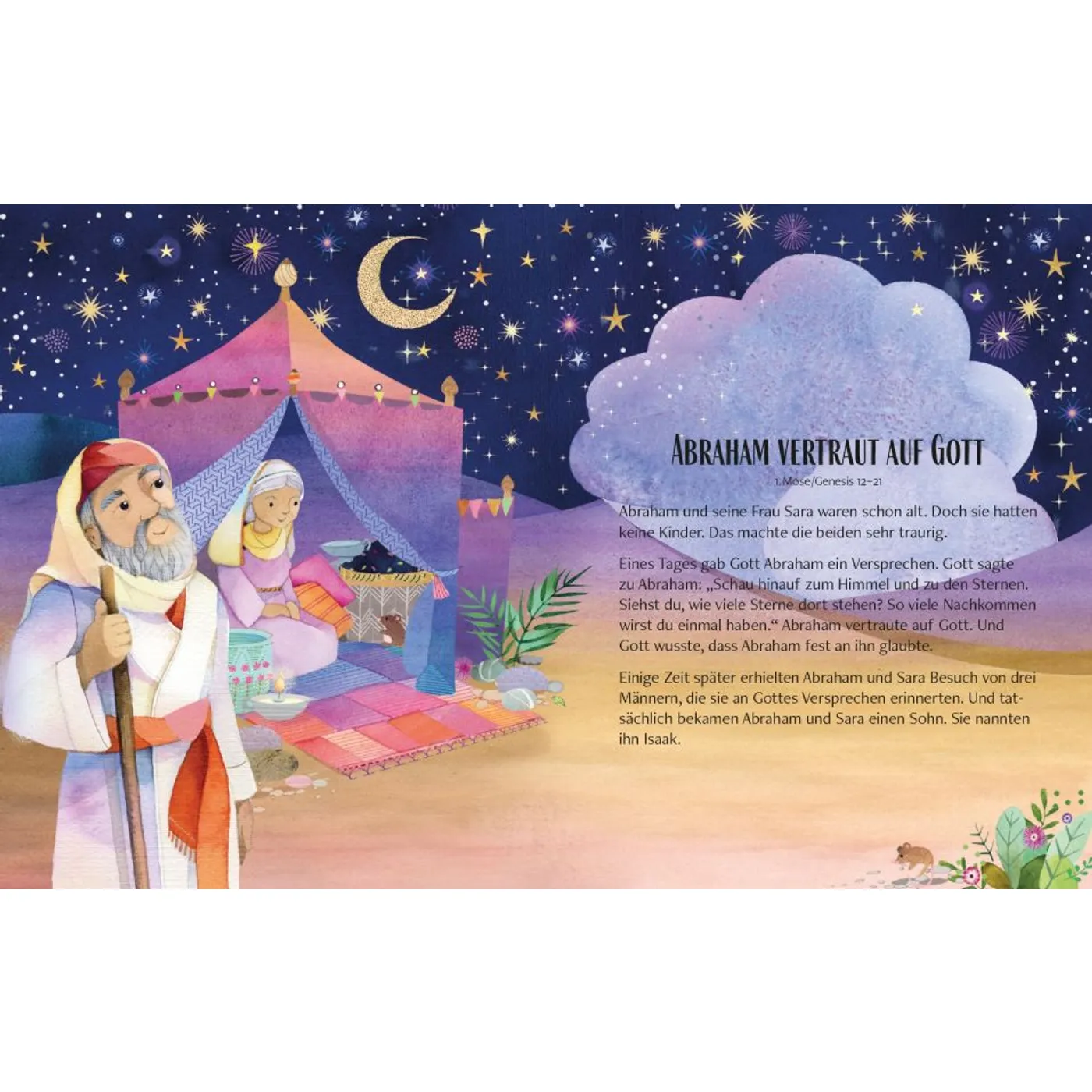 Die liebevoll illustrierte Immer-bei-mir-Bibel erzählt insgesamt 20 Geschichten, elf aus dem Alten und neun aus dem Neuen Testament.