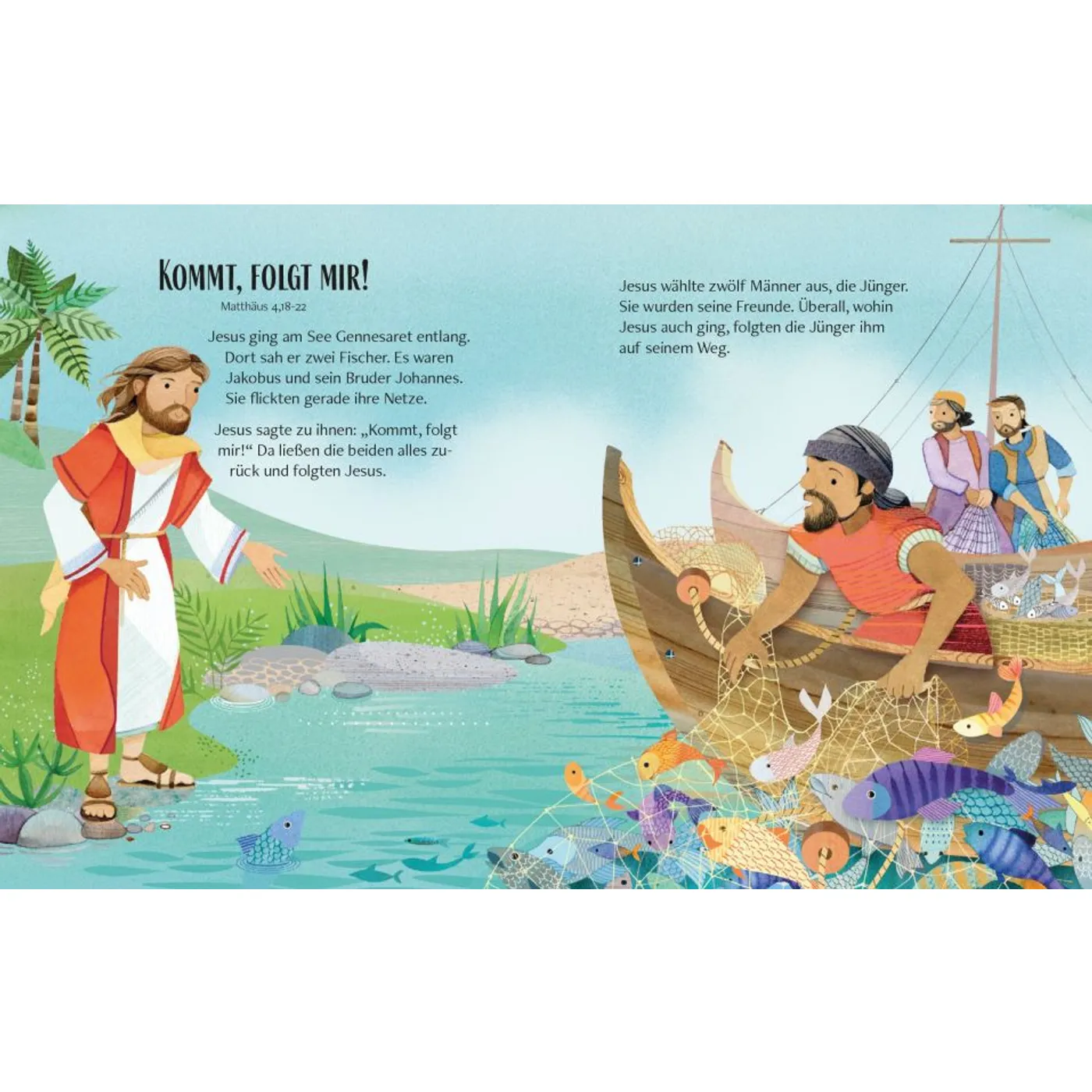Mich hat diese Kinderbibel begeistert, sie ist sowohl in der äußeren Form als auch inhaltlich absolut für Kleinkinder geeignet, und ich finde es eine total schöne Idee, wenn diese Bibel mit auf Ausflüge und Reisen geht und dabei alles mitmacht. Sehr gerne empfehle ich dieses Buch weiter.