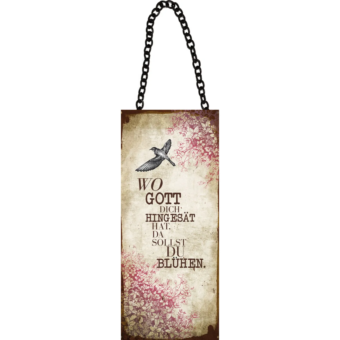 Metallschild mit Kette "Wo Gott dich hingesät hat, da sollst du blühen"