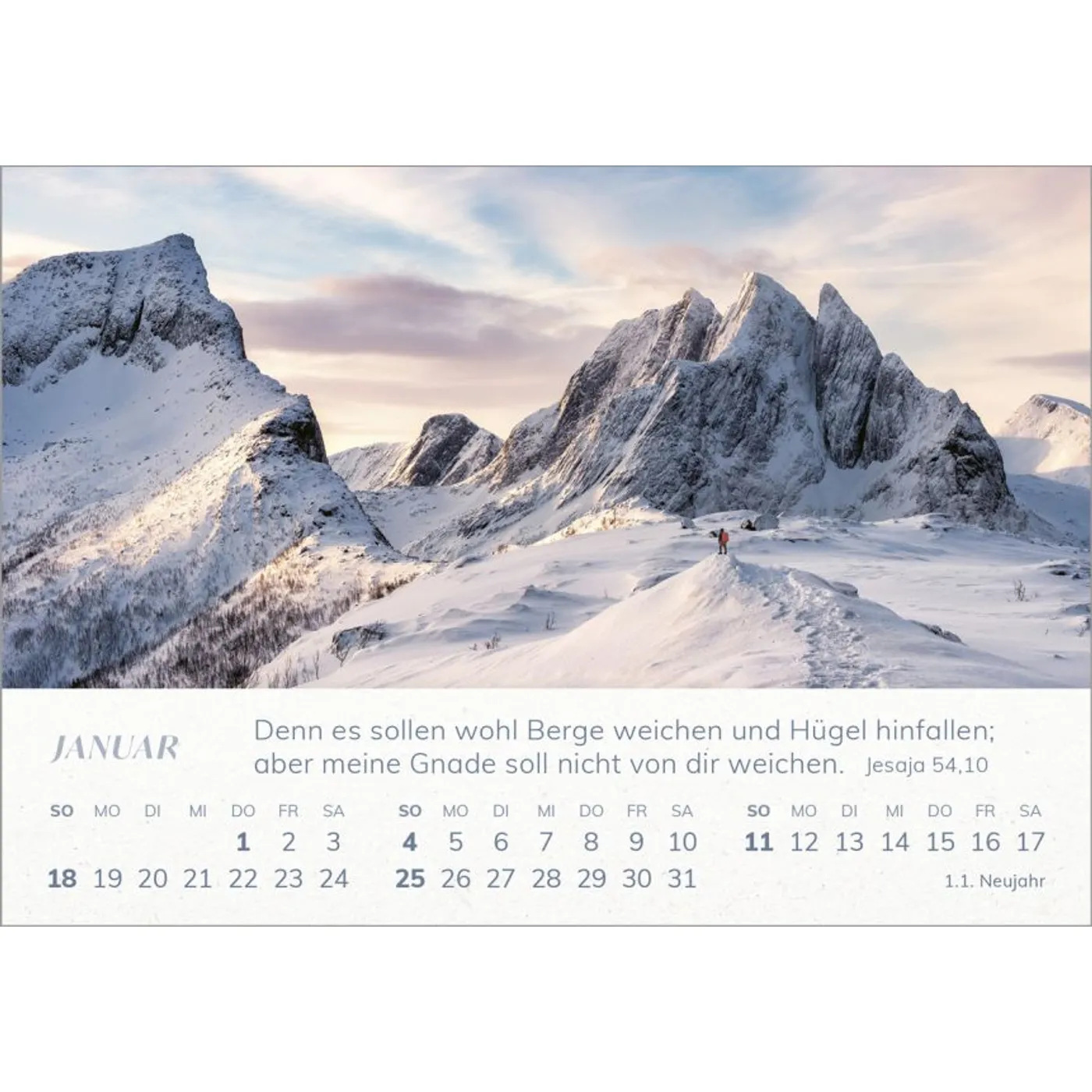 Ob als Geschenk für einen lieben Menschen oder als dekoratives Element für Dein eigenes Zuhause, dieser Mini-Panorama-Kalender bringt Freude und Hoffnung in jeden Tag. Lass Dich von den Bildern und den ermutigenden Worten begleiten und erlebe ein Jahr voller Schönheit und Glauben!