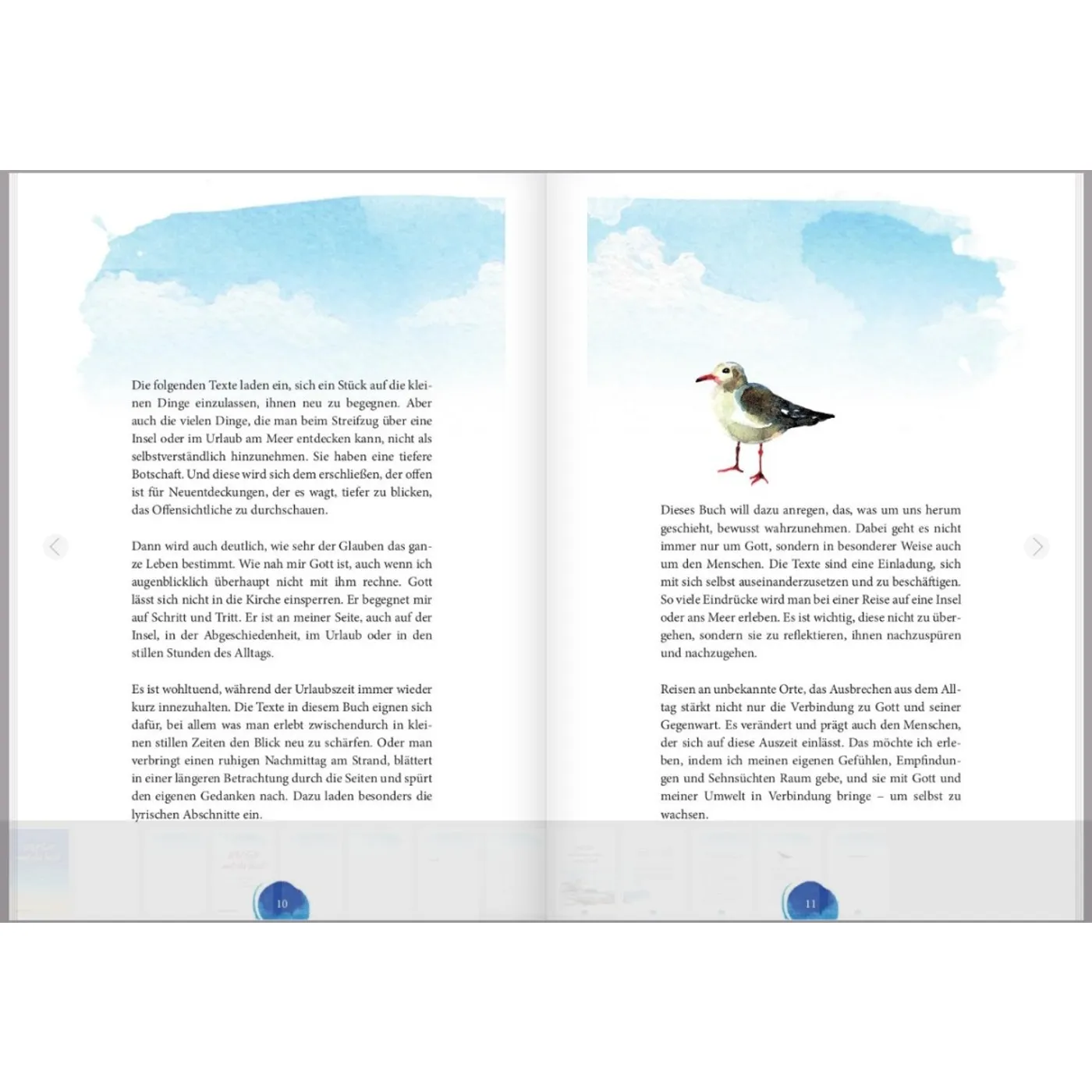 Für alle, die eine passende Urlaubslektüre suchen oder sich einfach das Meer nach Hause holen möchten: Mit diesem Buch atmet die Seele Meerluft und die Gedanken spazieren barfuß am Strand. Die kreativen Texte laden ein, Gott auf der Insel zu begegnen, aufmerksam für ihn zu sein, mit Augenmerk für die kleinen, unscheinbaren Dinge durch die Dünen oder am Meer entlang zu streifen und dabei in allem seine Spuren zu erkennen. Schnell wird klar: Gott ist uns auch auf der entlegensten Insel noch ganz nah.