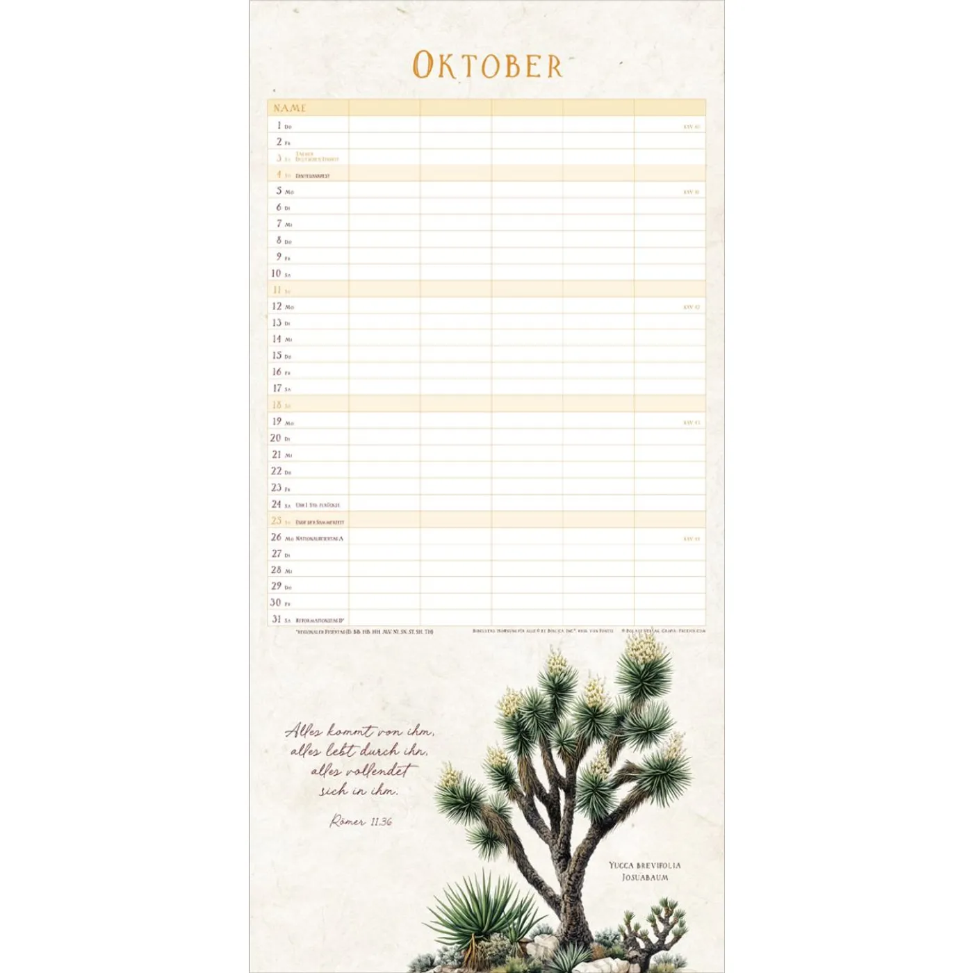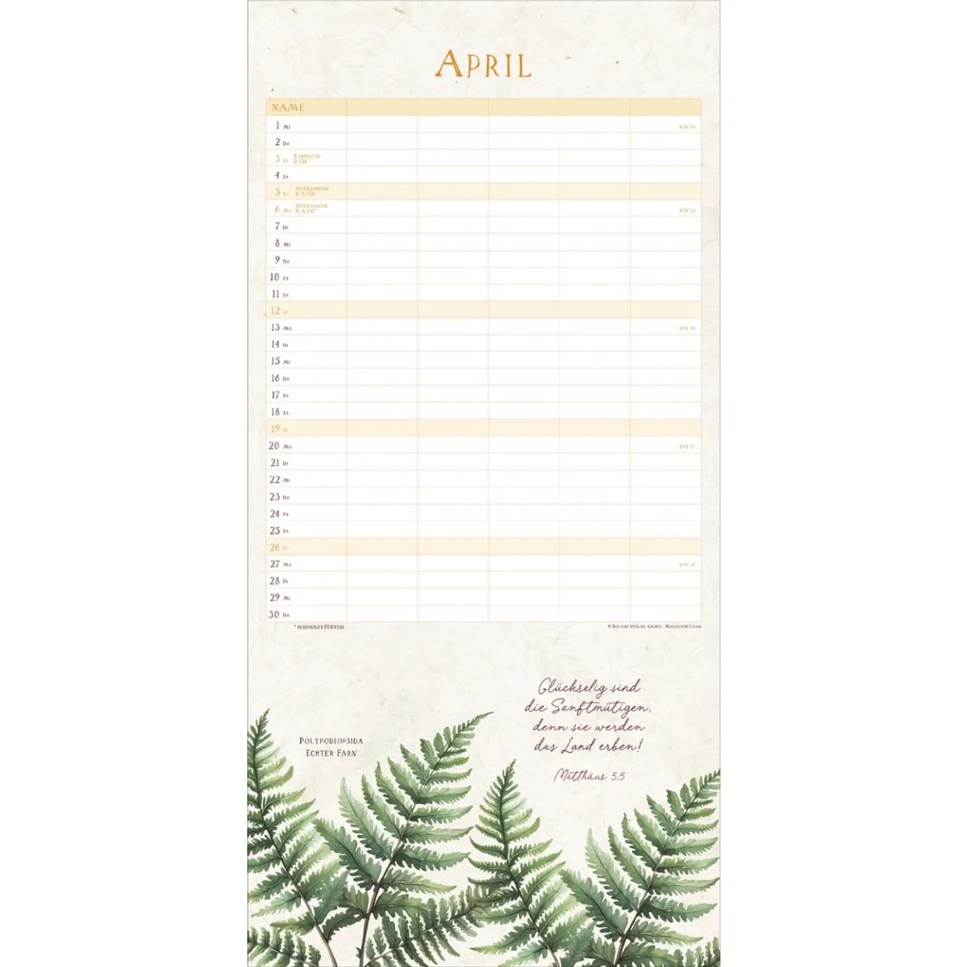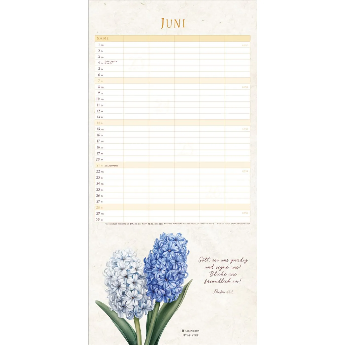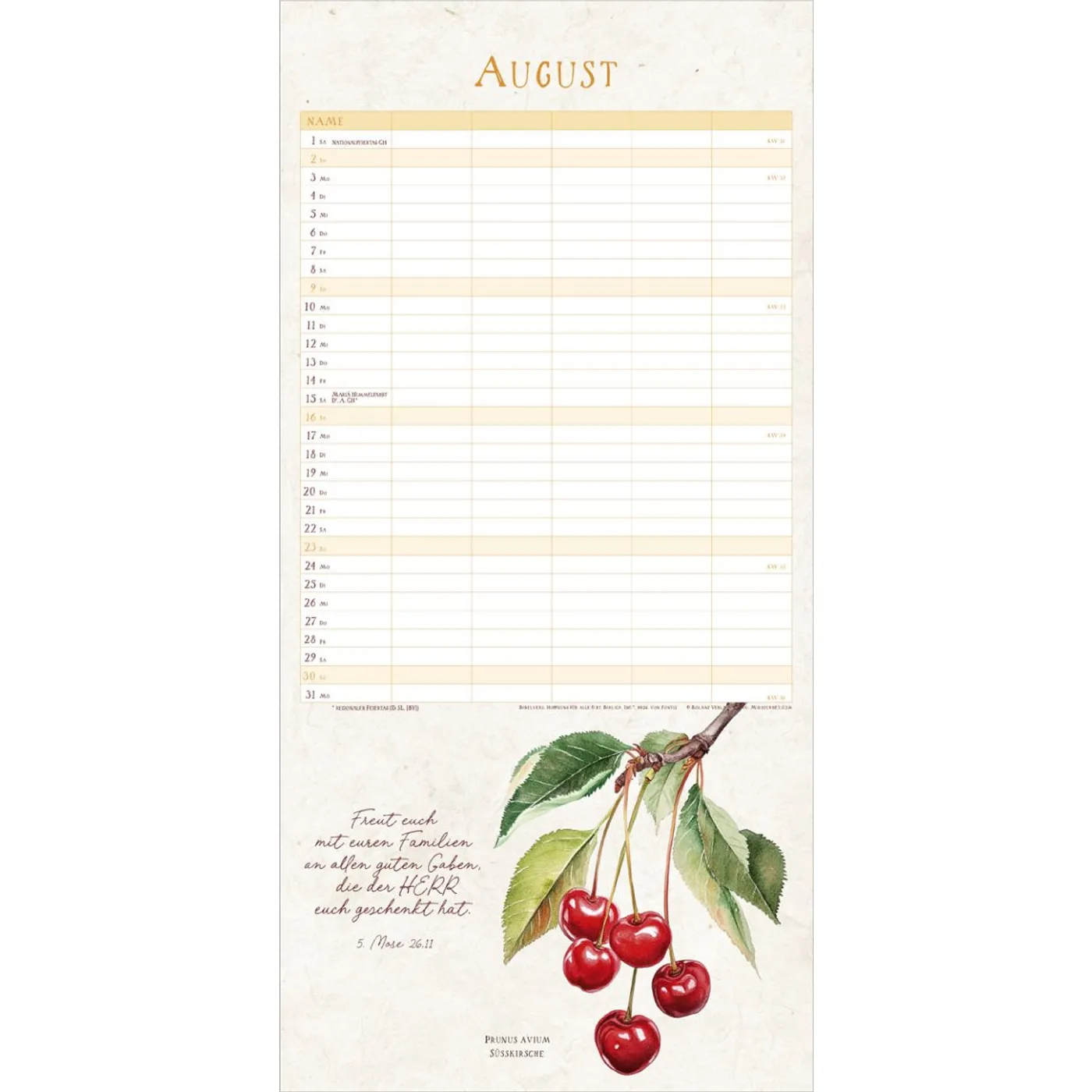 schön gestalteter Familienkalender mit 5 Spalten und großer Datumsspalte, in die man auch Notizen eintragen kann.