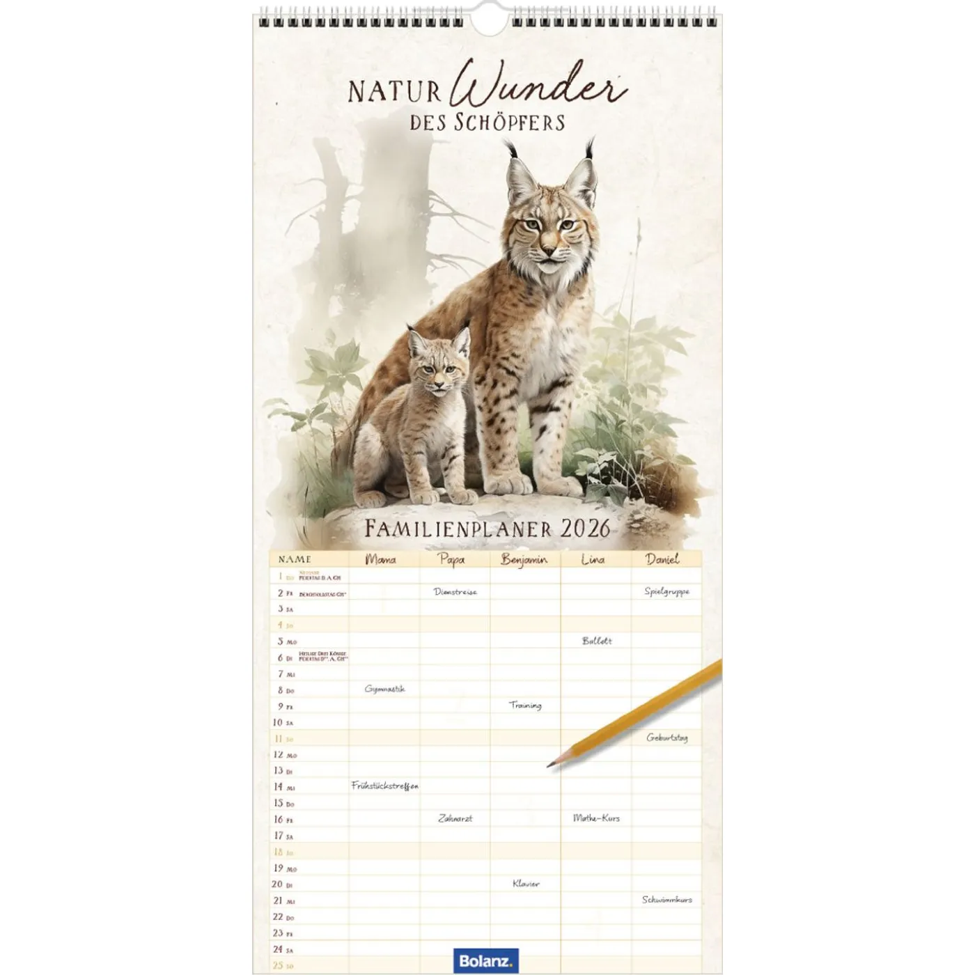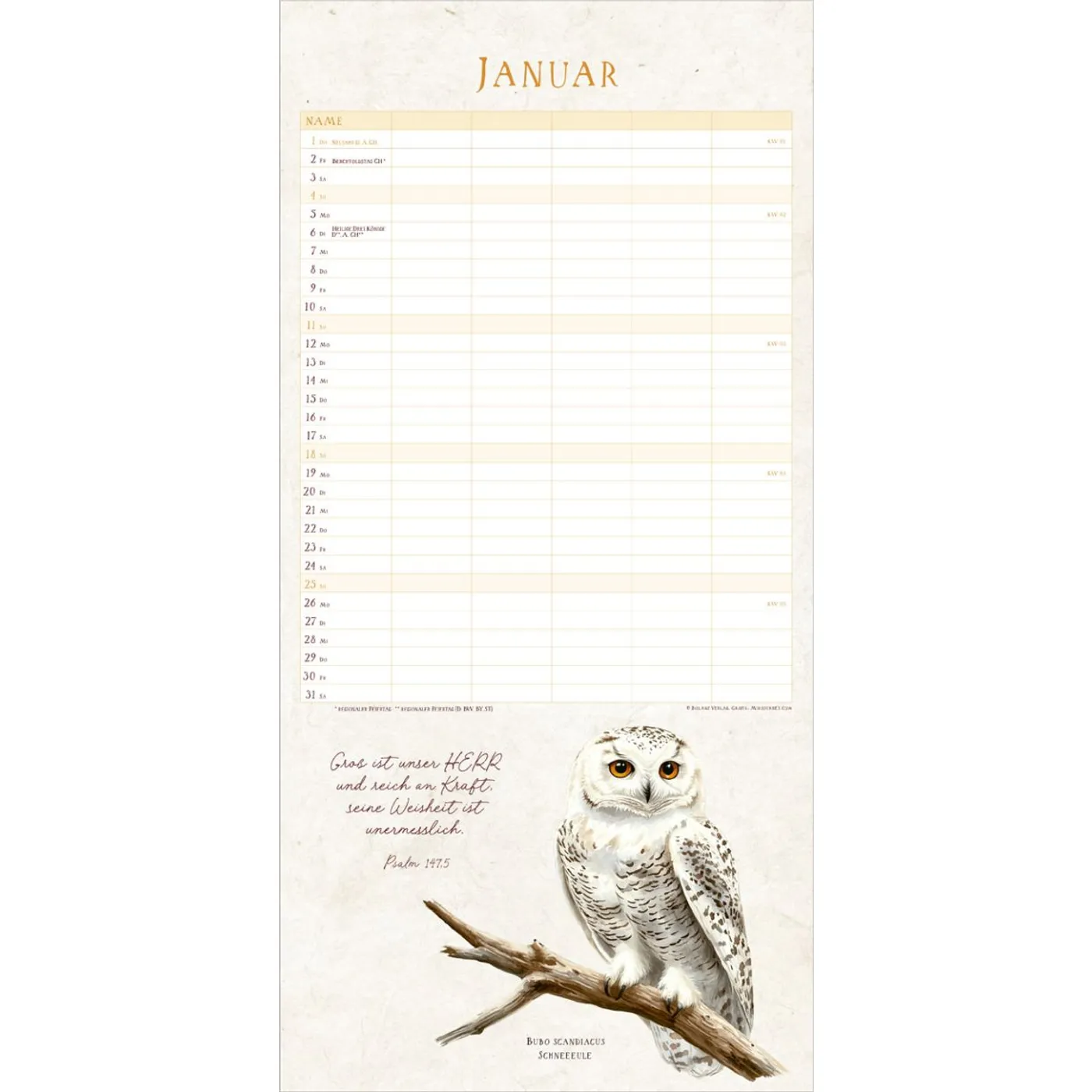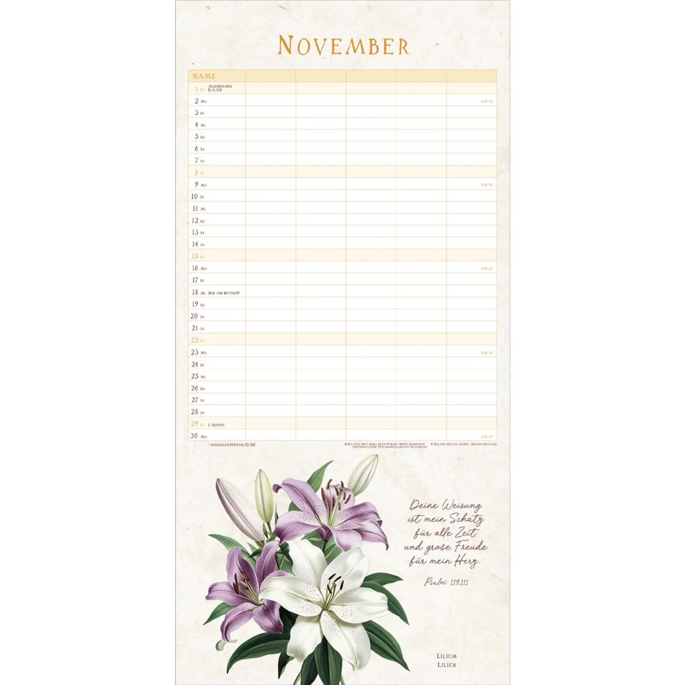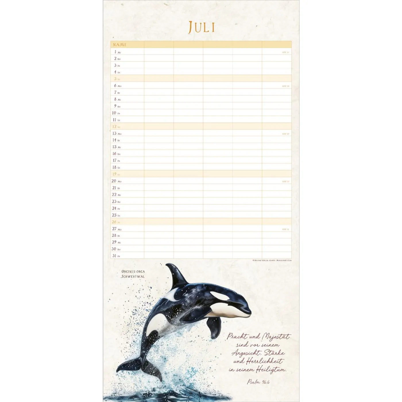 schön gestalteter Familienkalender mit 5 Spalten und großer Datumsspalte, in die man auch Notizen eintragen kann.