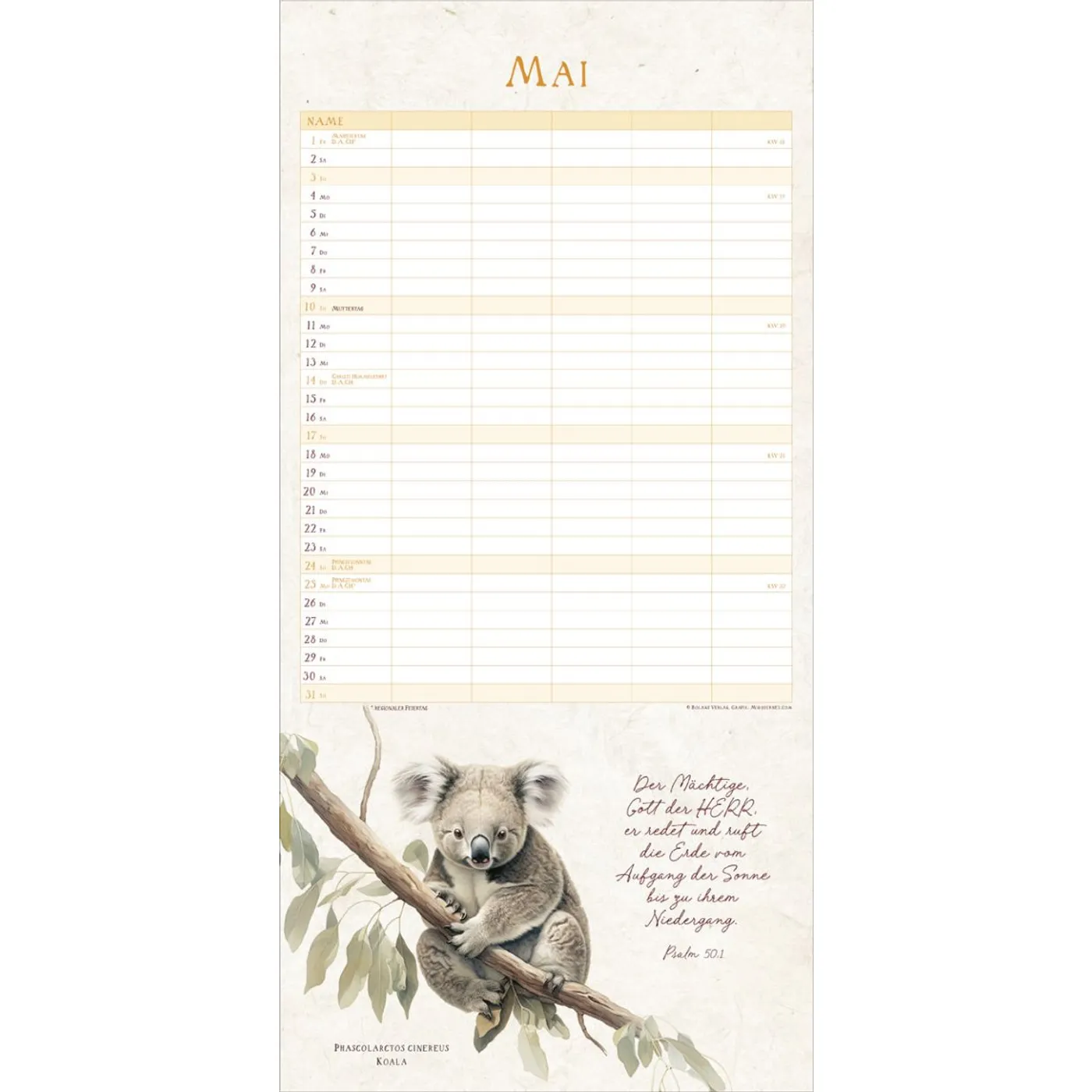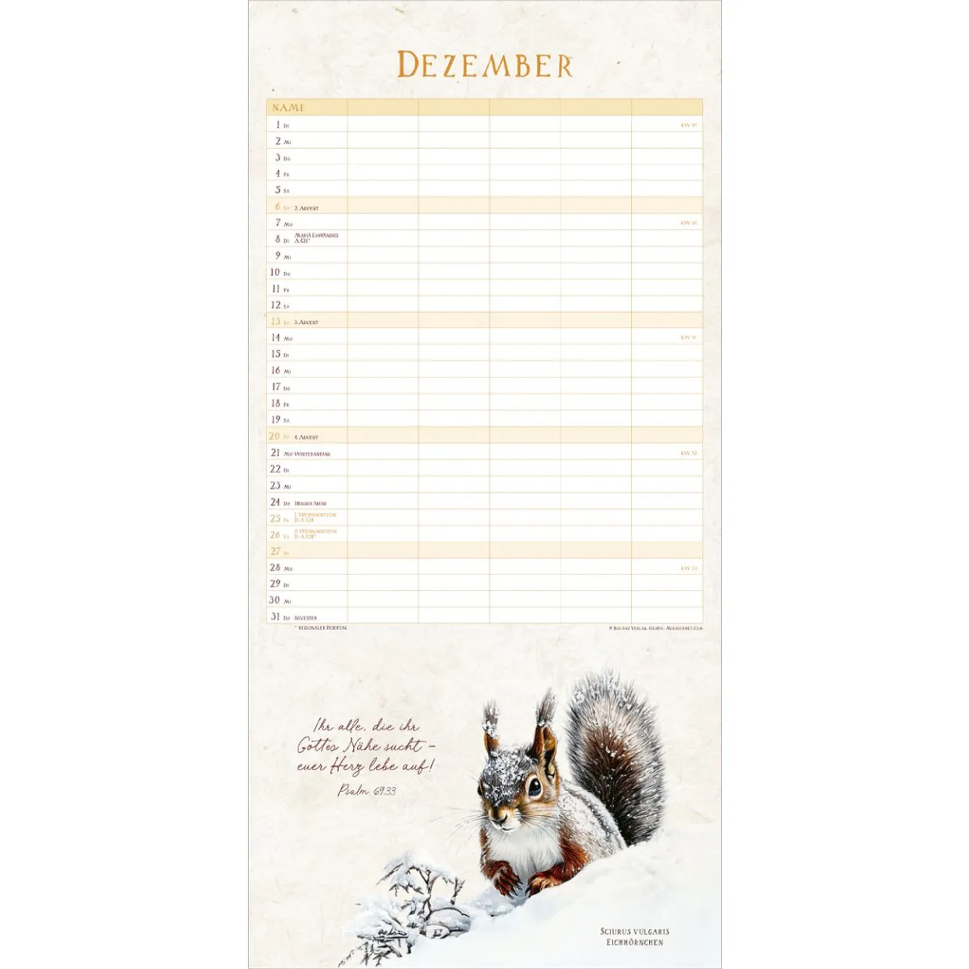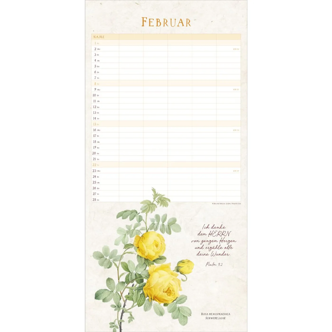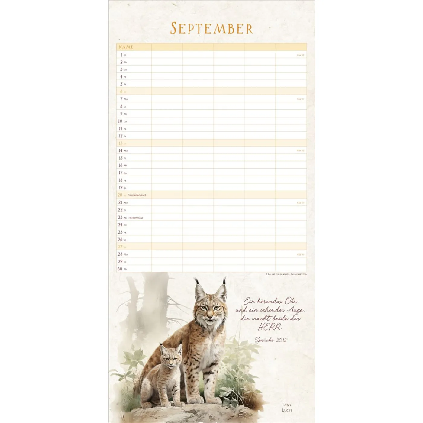 schön gestalteter Familienkalender mit 5 Spalten und großer Datumsspalte, in die man auch Notizen eintragen kann.