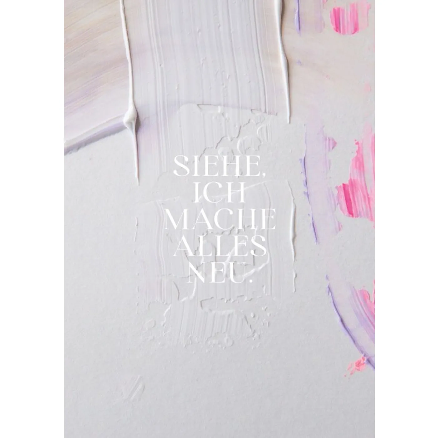 Zwischen zehn handgemalten Motiven mit berührenden Zitaten aus dem Buch "Siehe, ich mache alles neu" von Fabienne Sita bleibt viel Freiraum: für Gebete, Notizen, Ideen, Wunder, Skizzen -das Leben selbst.