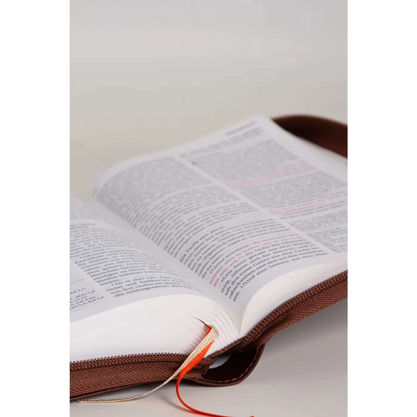 Wow, ich hatte die Bibel noch nicht ganz aus dem Karton geborgen, da war ich schon begeistert. Vom Kunstleder, der Verarbeitung, dem Druck auf der Vorderseite. Atemberaubend auch der Geruch. Nach dem öffnen des Reißverschluss fand ich die übliche, hochwertige Neues Leben Bibel in großer Schrift vor. Sehr gut zu lesen, hochwertig gebunden, jeden Cent wert. Ich bin Schockverliebt in diese Bibel.